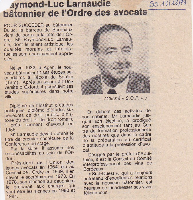 1979, article de Sud-Ouest sur Raymond Larnaudie