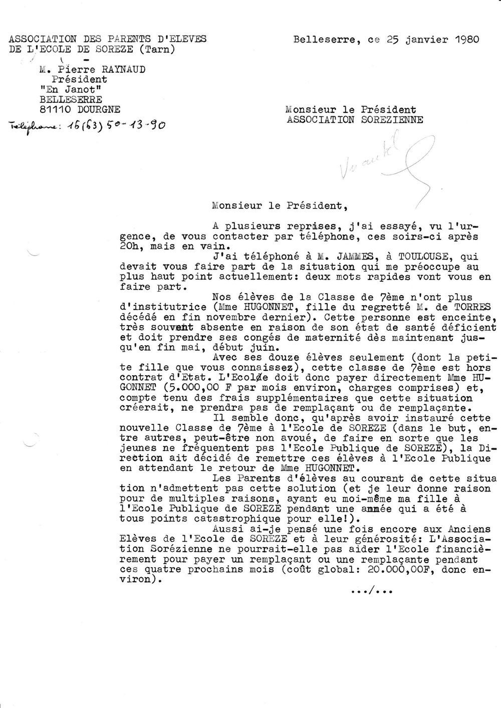 1980, 25 janvier, le président des parents d'élèves à Mornand