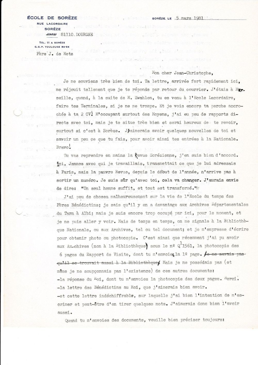 1981, 5 mars, le Père De Metz à Jean-Christophe Bossuge