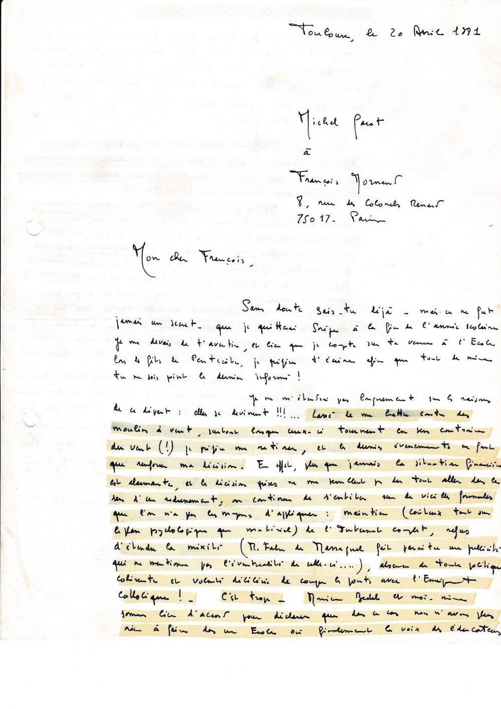 1981, 20 avril, Michel Garot, censeur, à Mornand