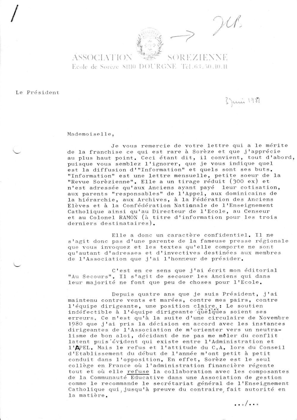 1981, 3 juin, réponse de Mornand à Josette Marchez