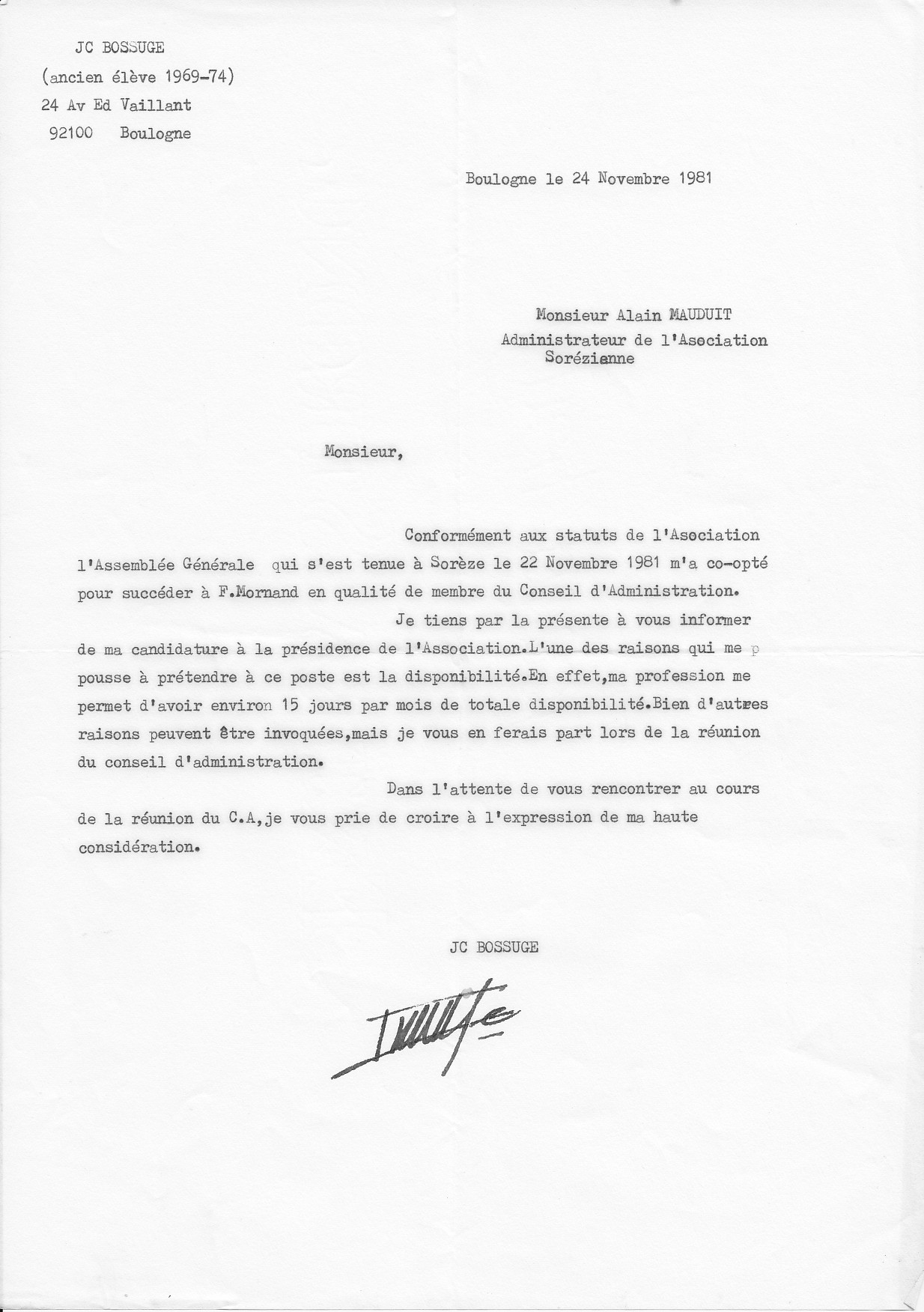 1981, 24 novembre, Jean-Christophe Bossuge, candidat à la présidence de l'Association