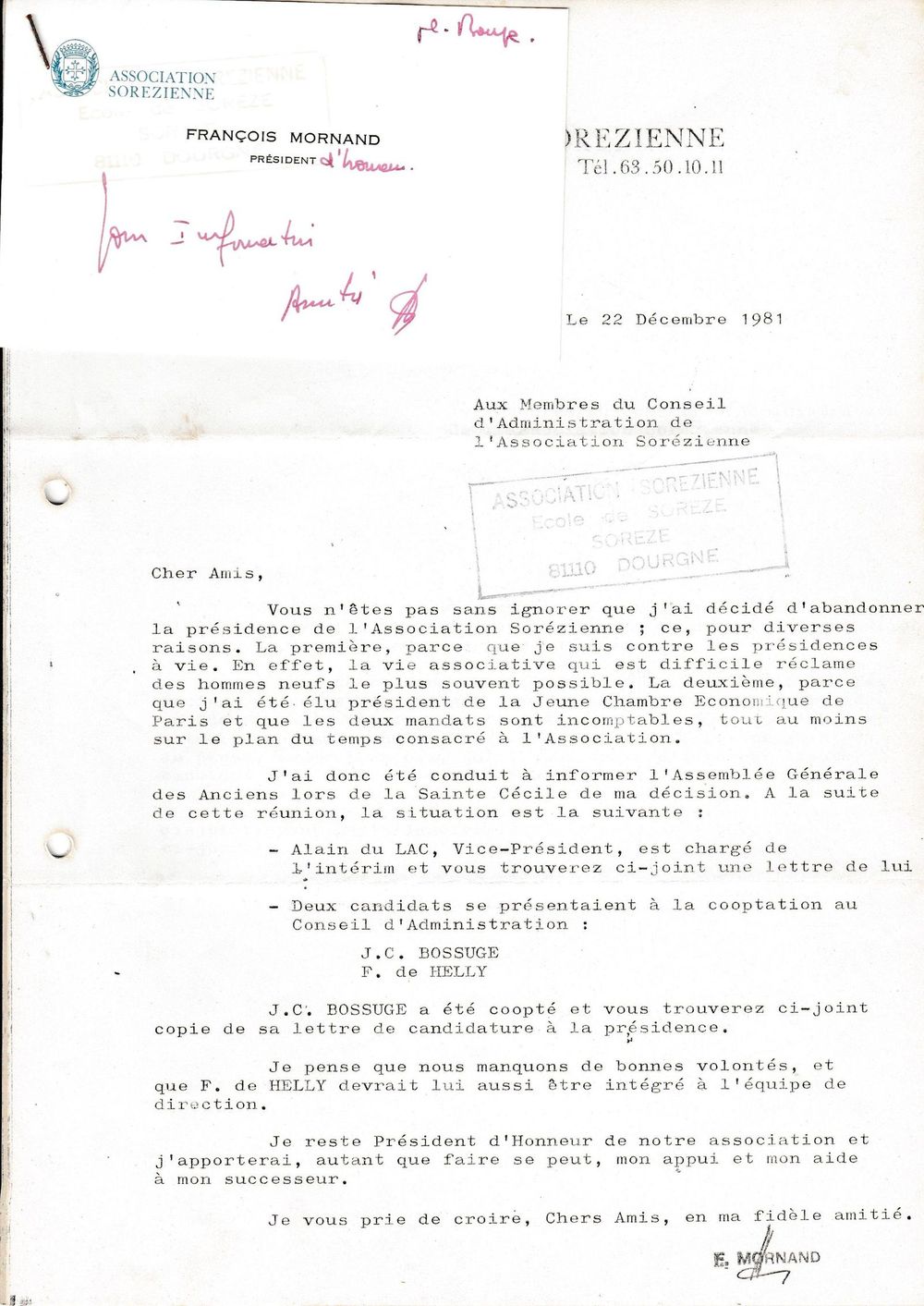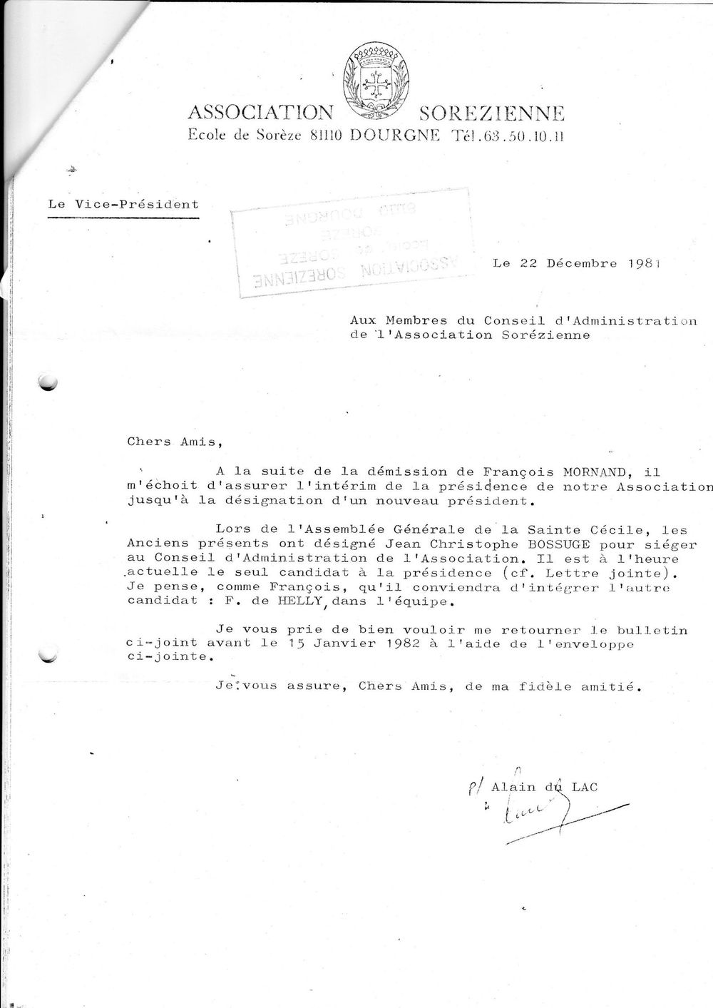 1981, 22 novembre, élection de Bossuge et nouveau bureau