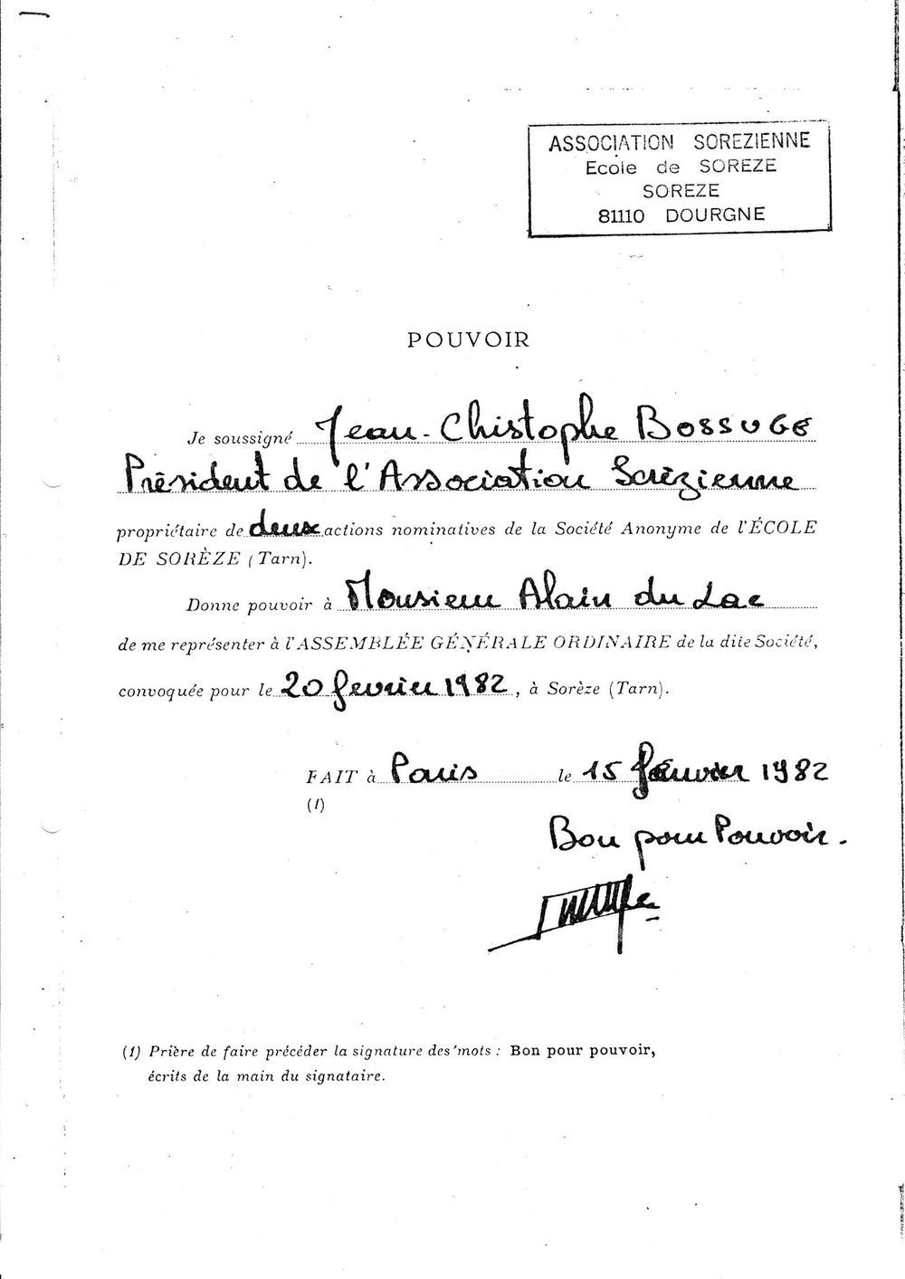 1982, 15 février, pouvoir de Bossuge à l'AG de l'Association