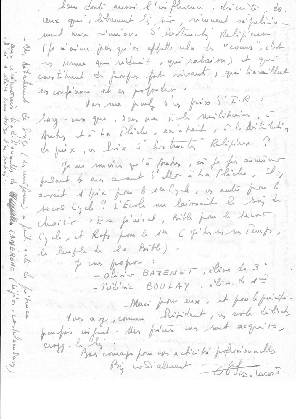1982, 3 mai, lettre du Père Lacoste à Bossuge