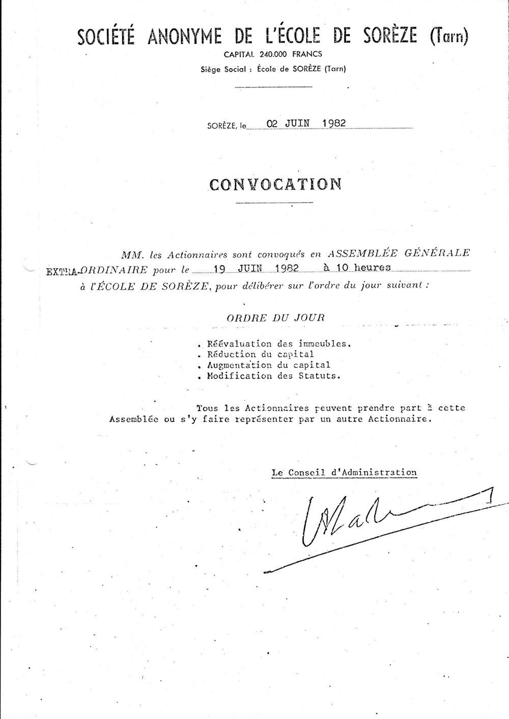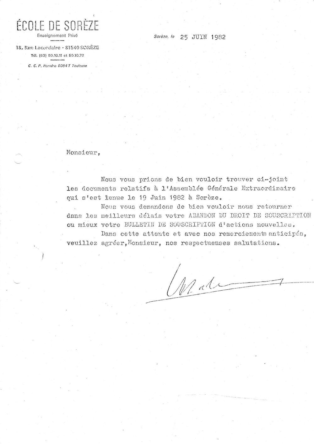 1982, juin, assemblée générale de la SA École de Sorèze