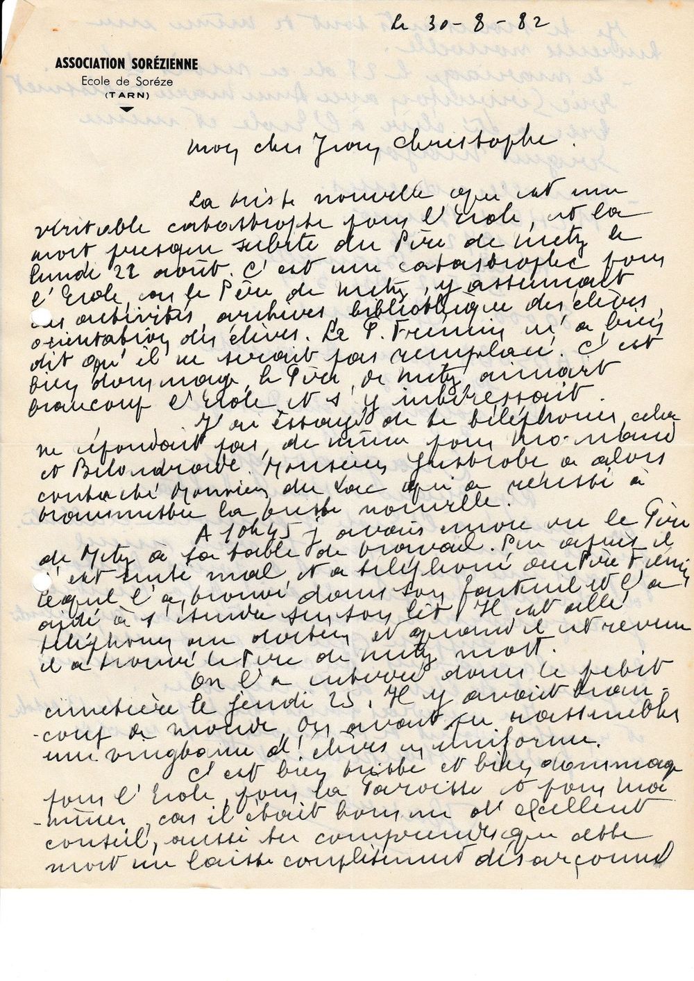 1982, 30 août,Jean Carrière à Bossuge # décès du Père De Metz