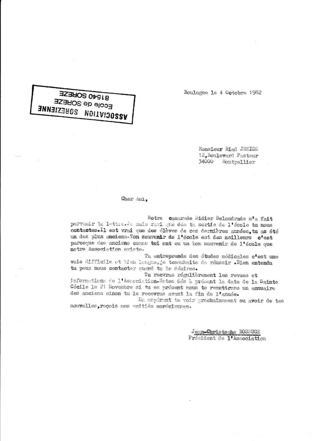 1982, 4 octobre, Bossuge à Riad Jreige (76-82)