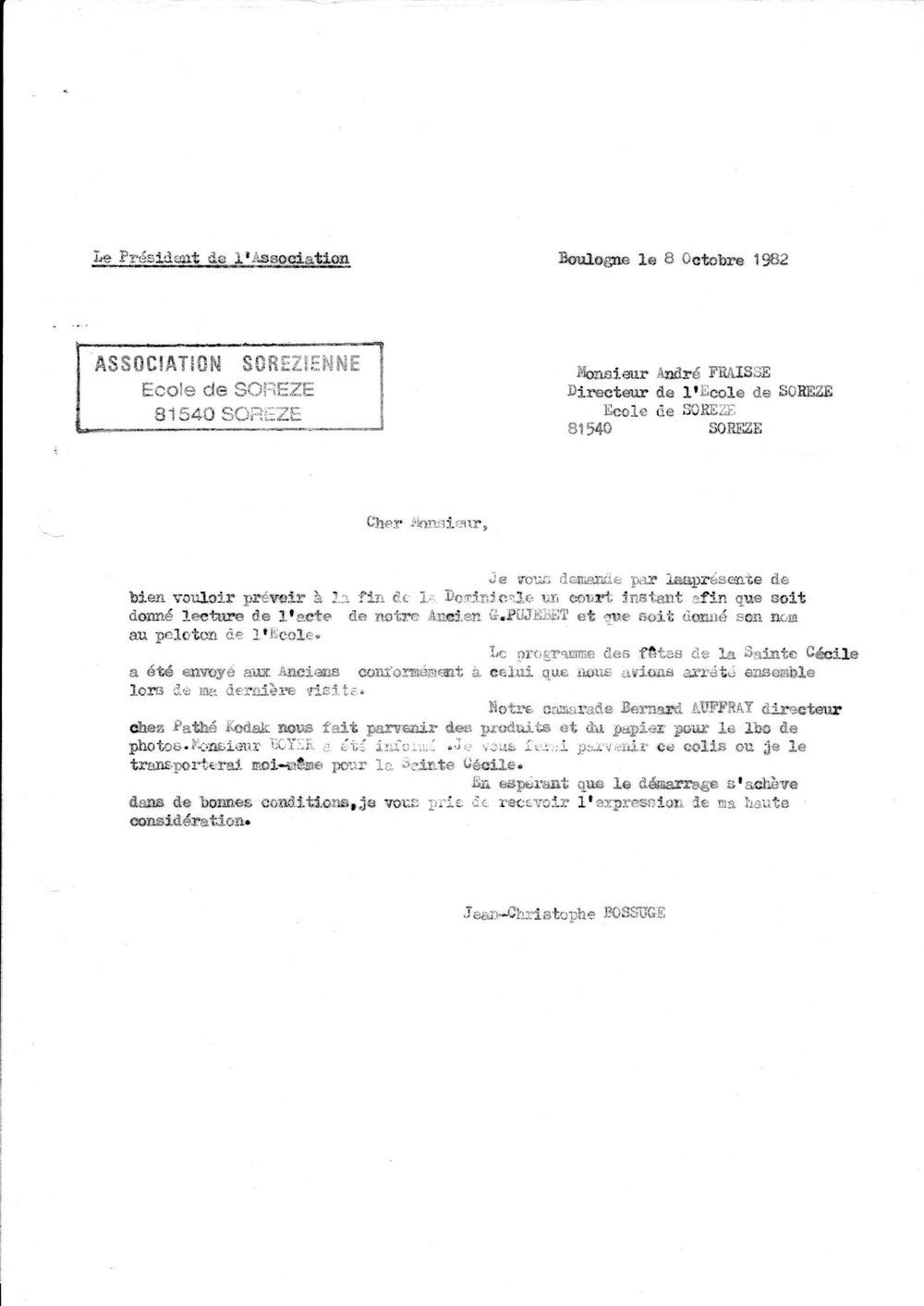 1982, 8 octobre, Bossuge à André Fraissé, directeur