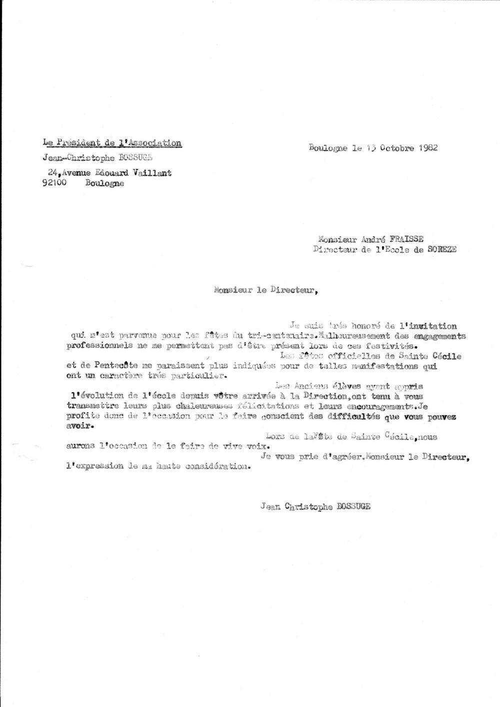 1982, 13 octobre, Bossuge à André Fraissé, directeur
