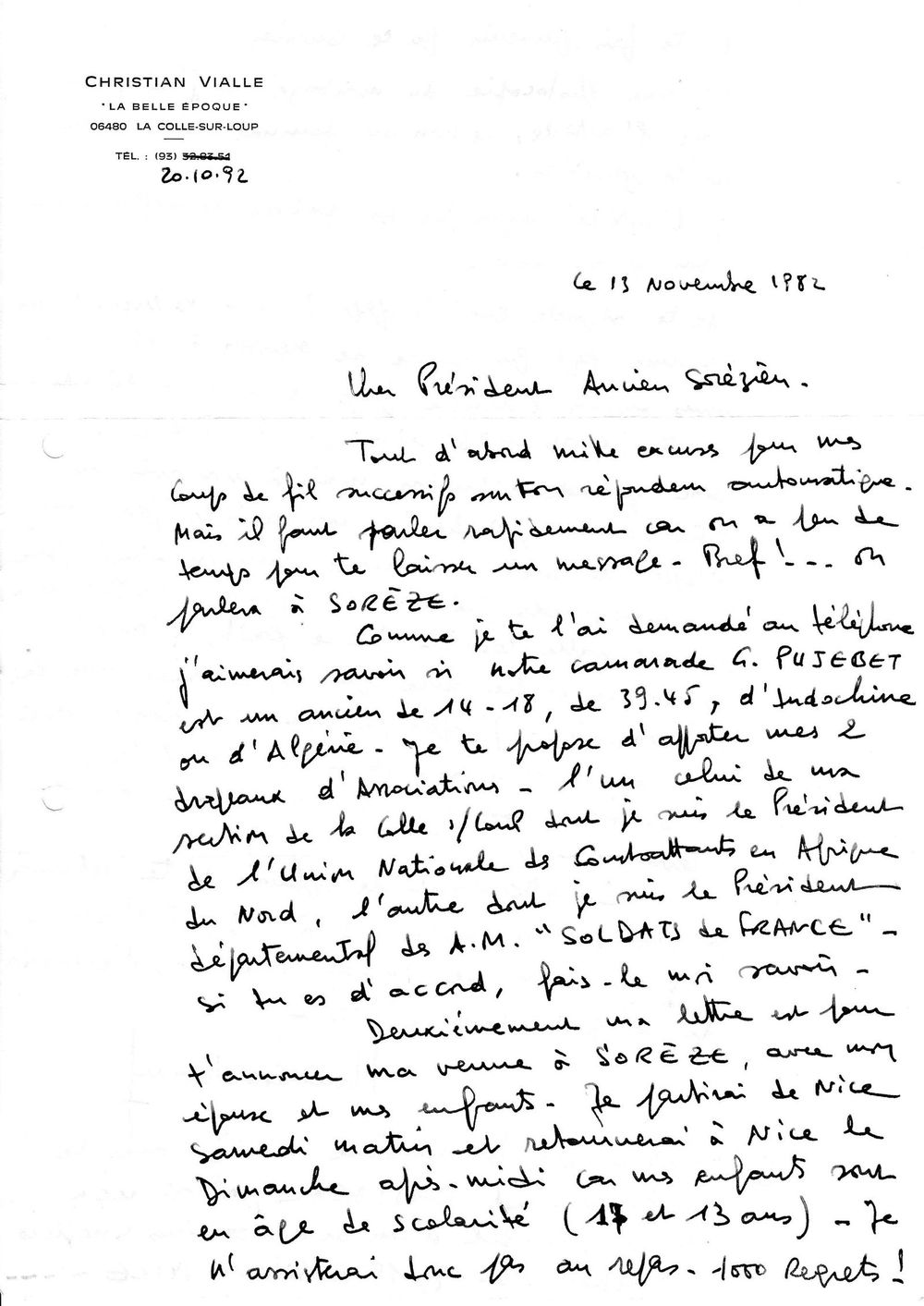 1982, 13 novembre,Christian Vialle (56-58) à Bossuge, et hommage à Pujebet