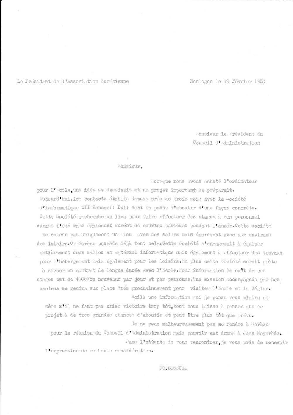 1983, 19 février, Bossuge au président du Conseil d'Administration
