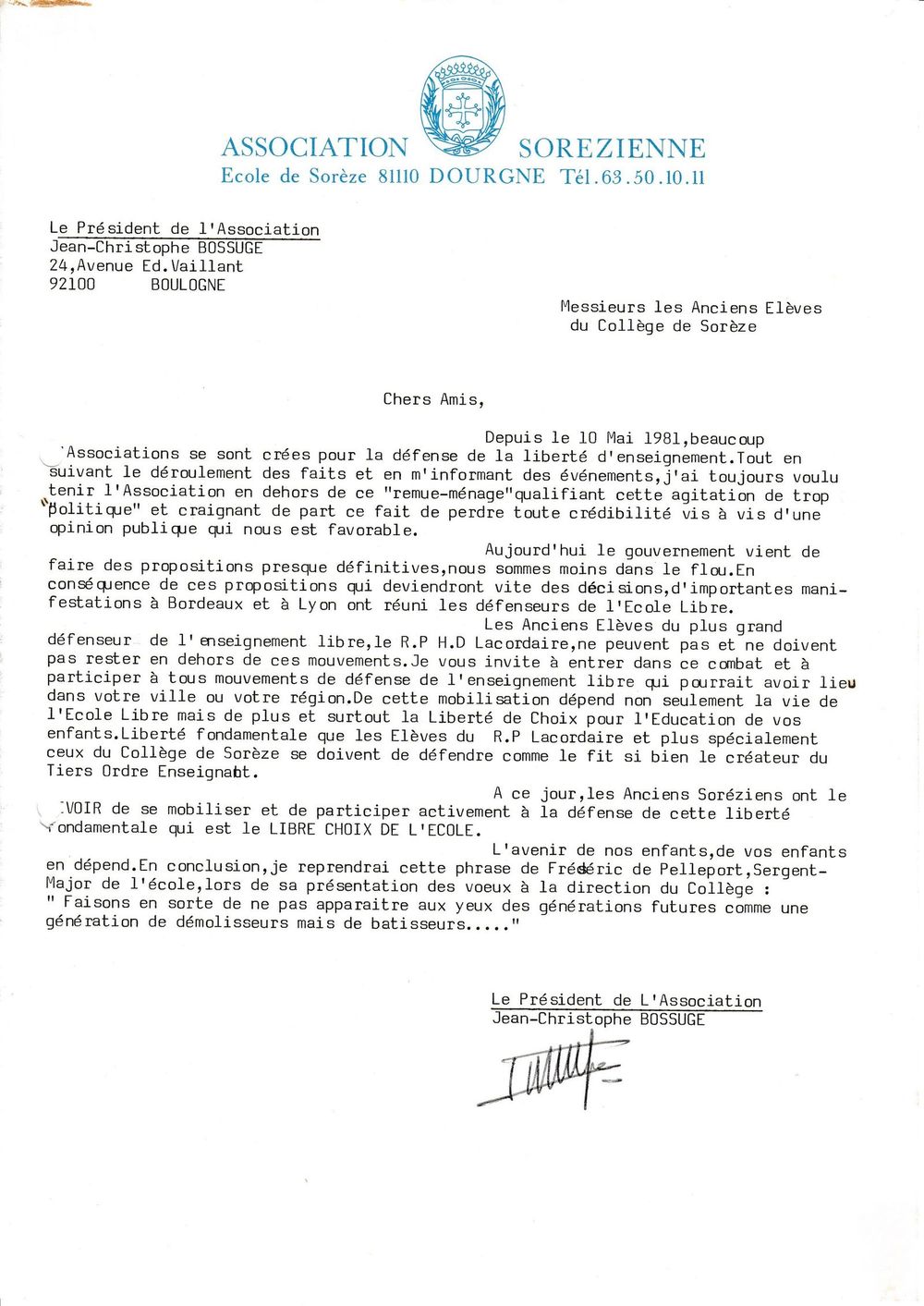 1984, février, Bossuge aux anciens # l'enseignement libre