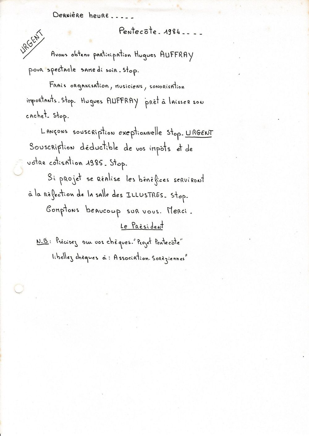 1984, février, Bossuge aux délégués de l'Association # Hugues Aufray