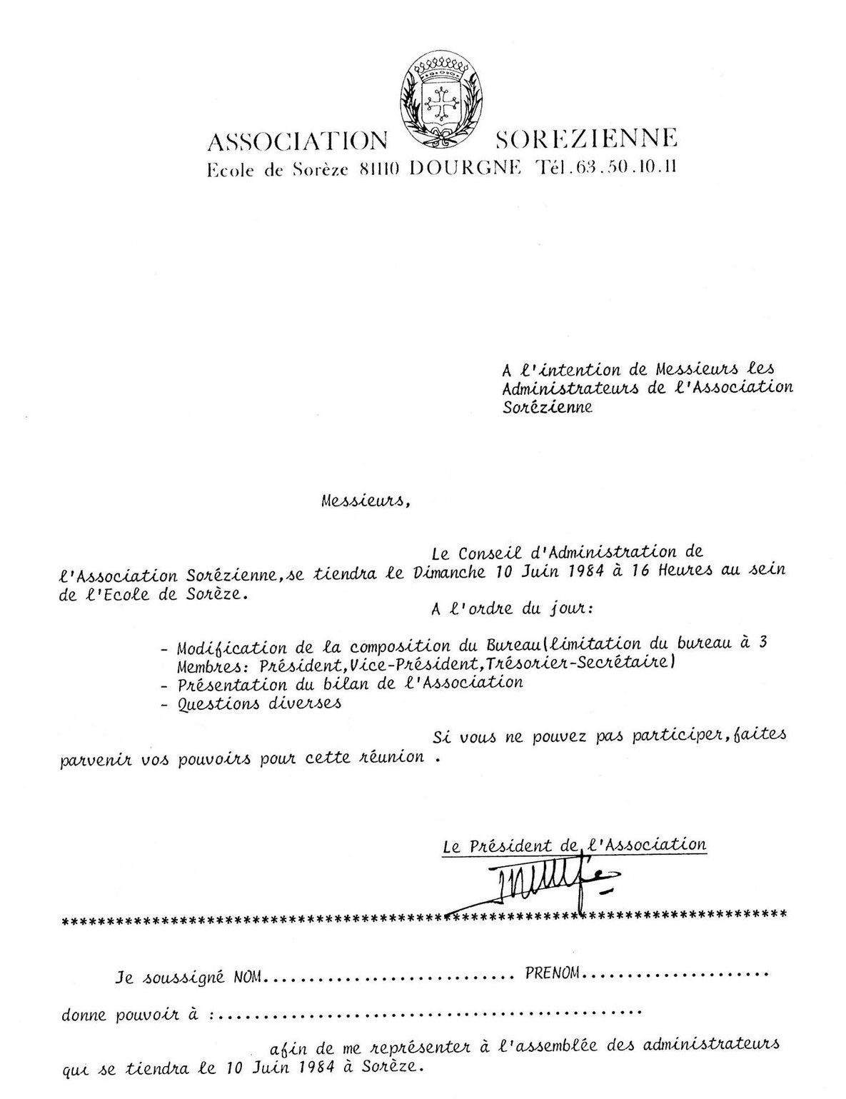 1984, 10 juin, Bossuge aux administrateurs de l'AS