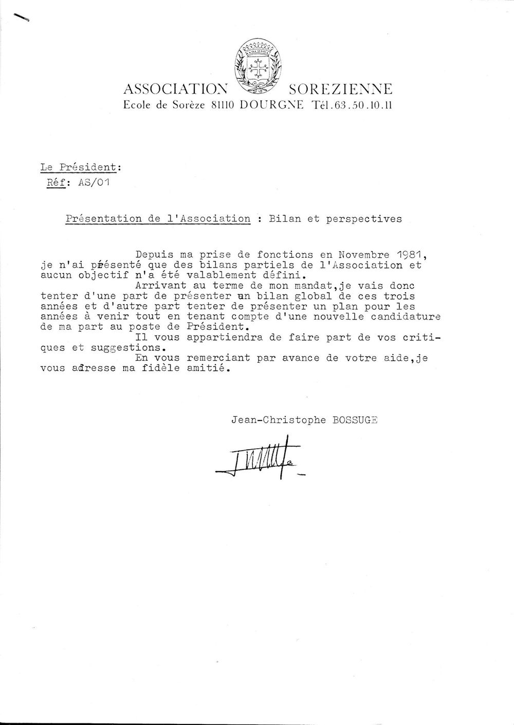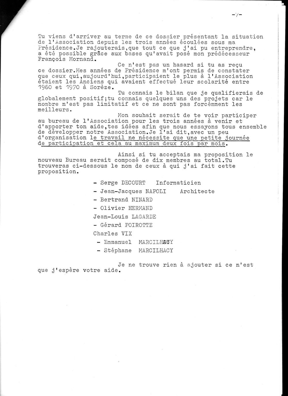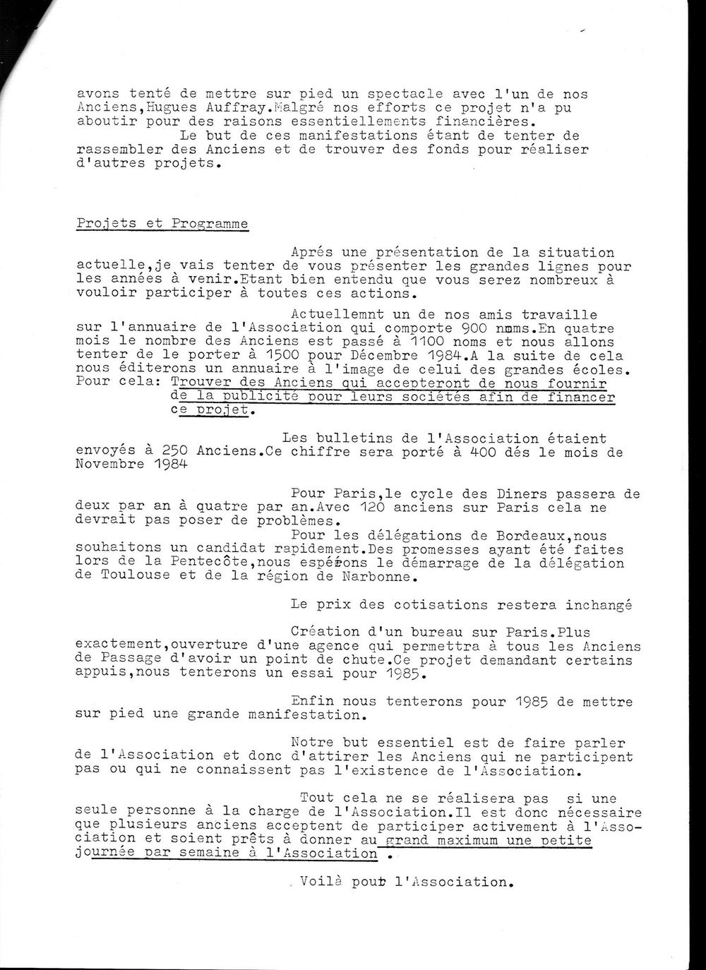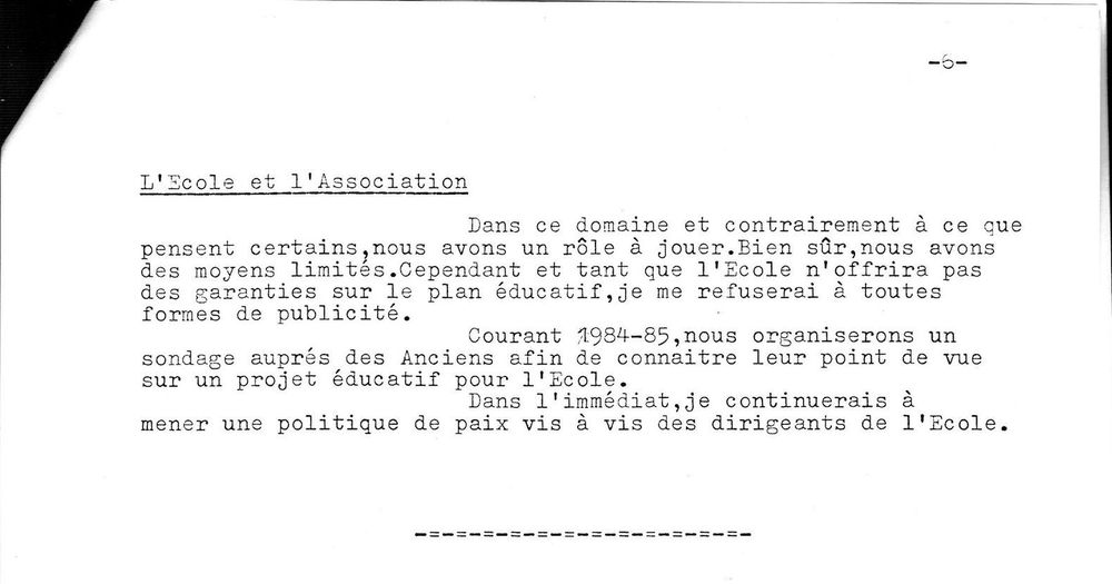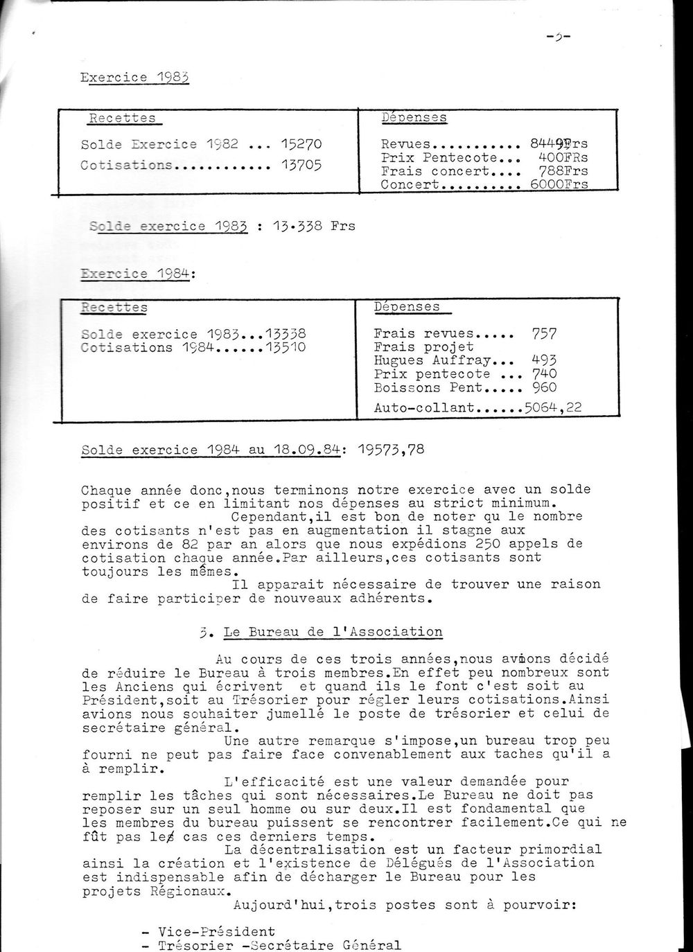 1984, 20 septembre,bilan de la mandature de Bossugeet proposition d'un nouveau bureau