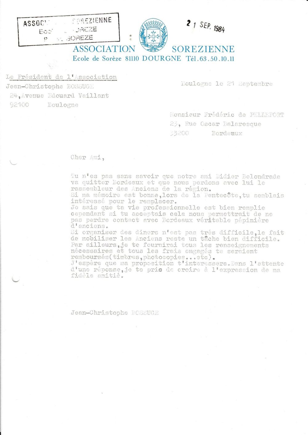 1984, 21 septembre, Bossuge à Frédéric De Pelleport (59-65)