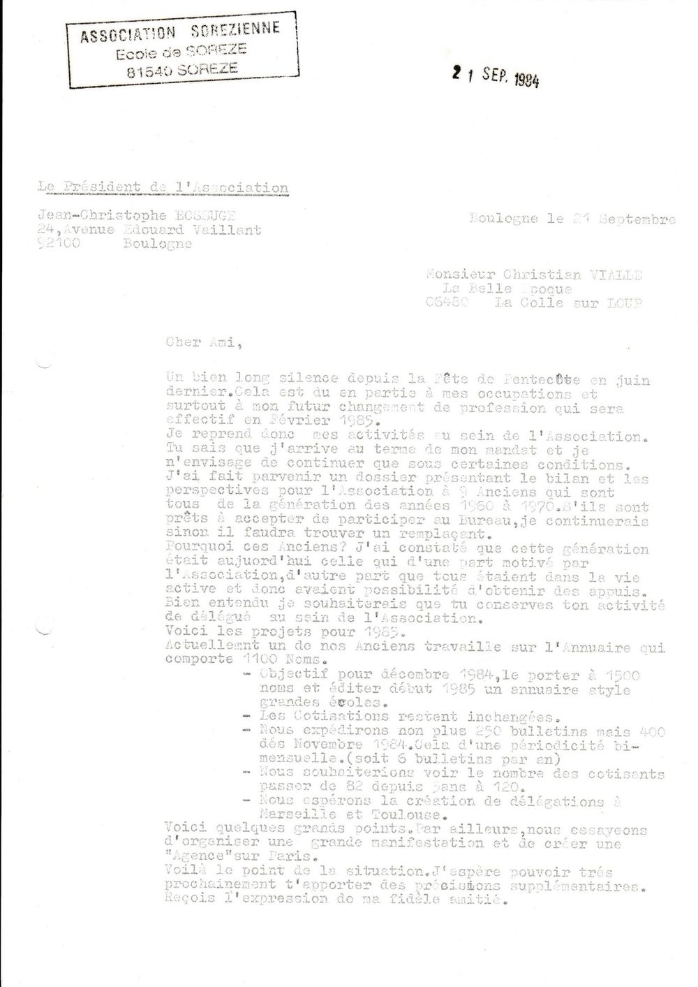 1984, 21 septembre, Bossuge à Christian Vialle (56-58)
