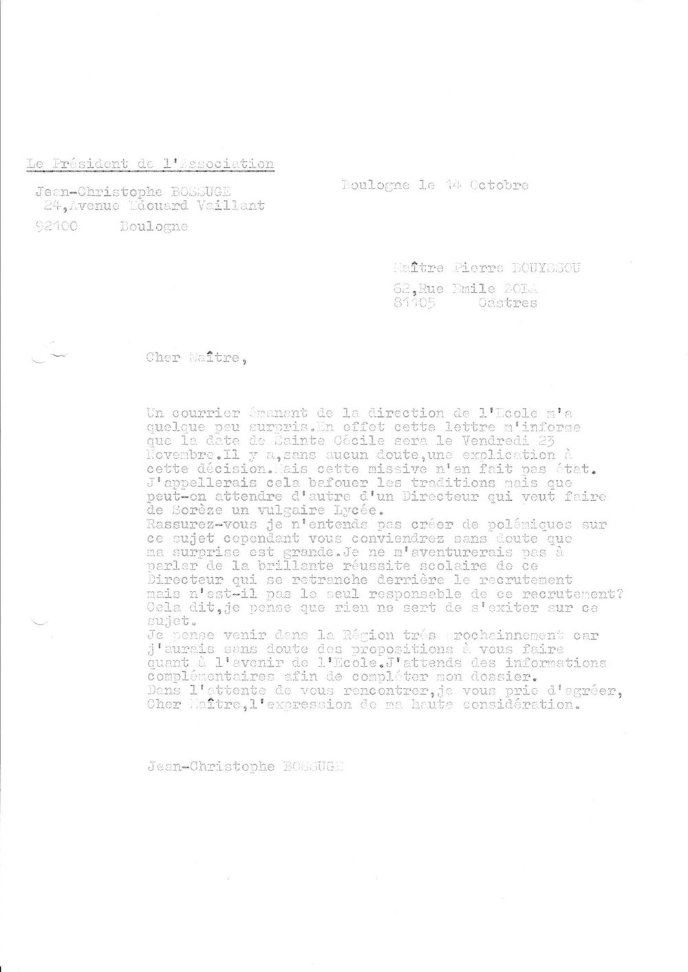 1984, 14 octobre, Bossuge à Maître Bouyssou