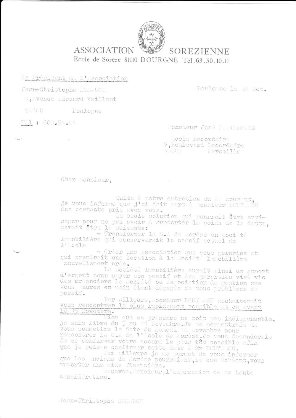 1984, 24 octobre,Bossuge à José Bartolomei,directeur de Lacordaire Marseille