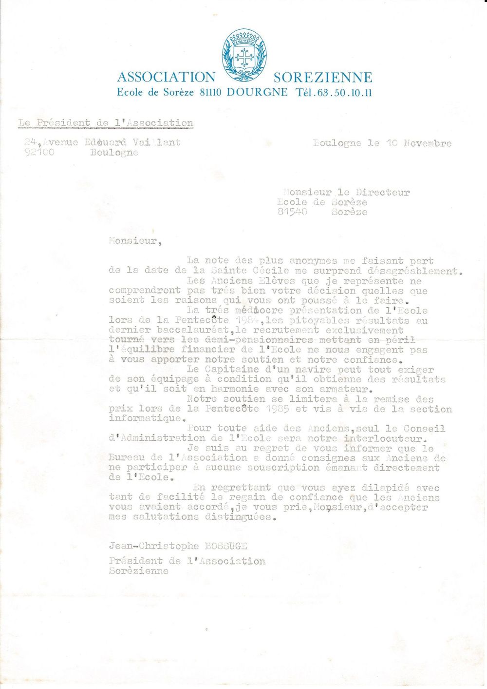 1984, novembre, affaire de la date de la Sainte Cécile