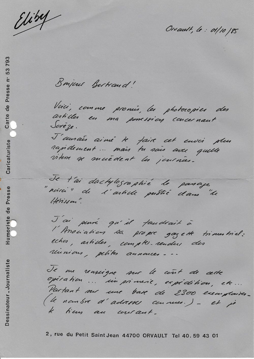 1985, 1er octobre, Lebonnois (72-74) à Ninard