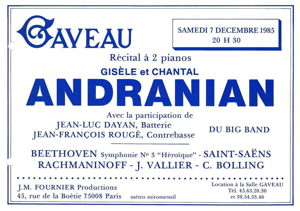 1985, 7 décembre, concert de Gisèle et Chantal Andranian
