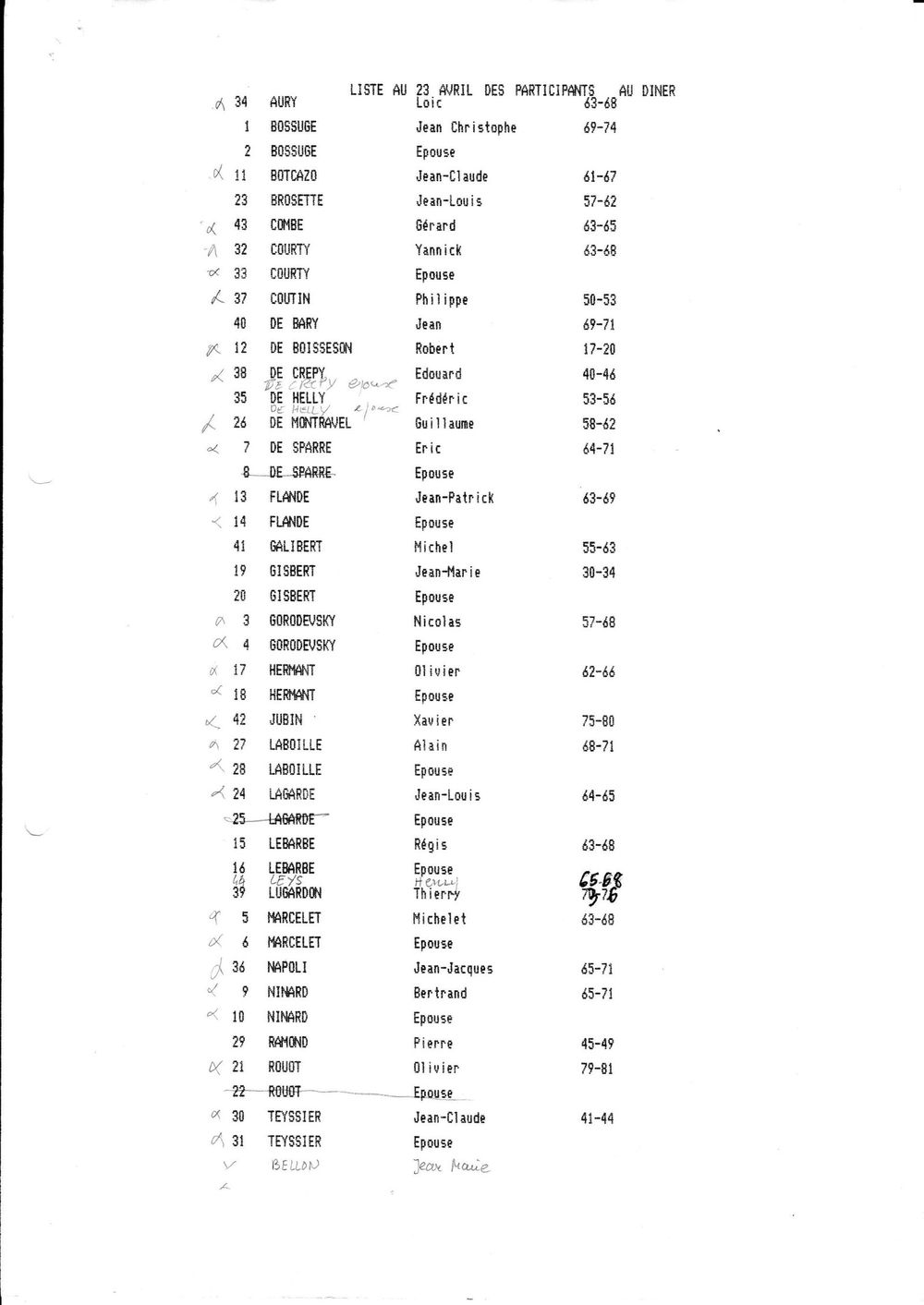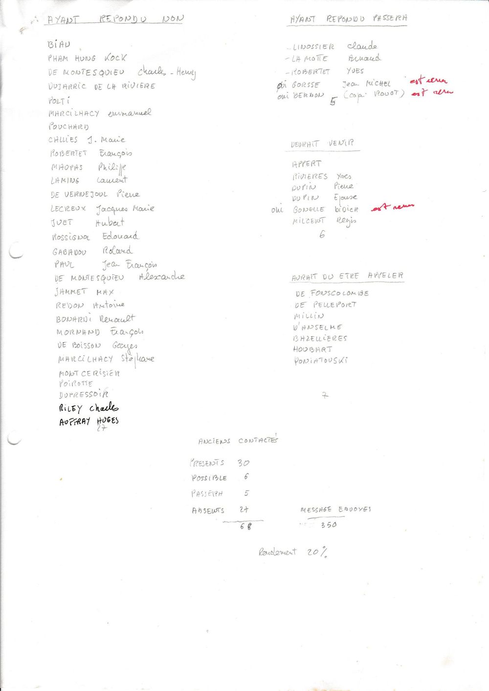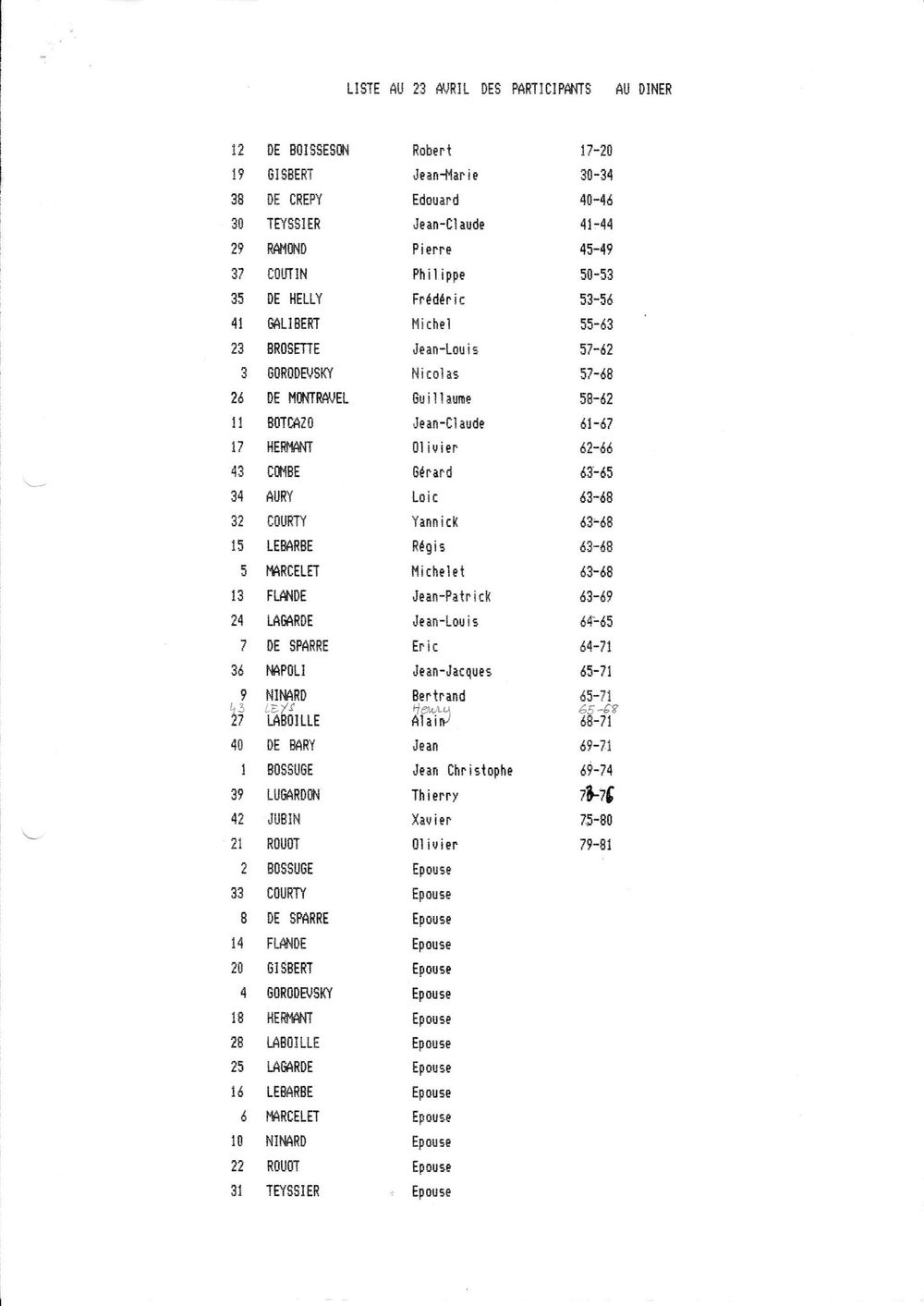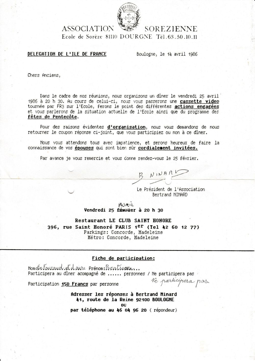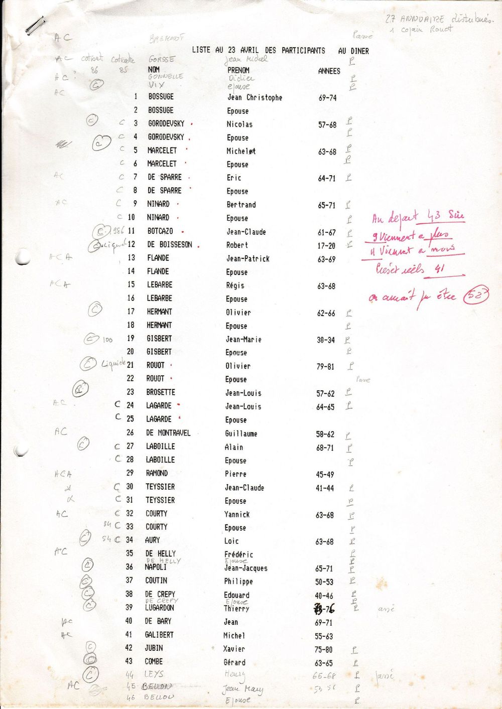 1986, 25 avril, résultats du dîner de Paris du 25 avril