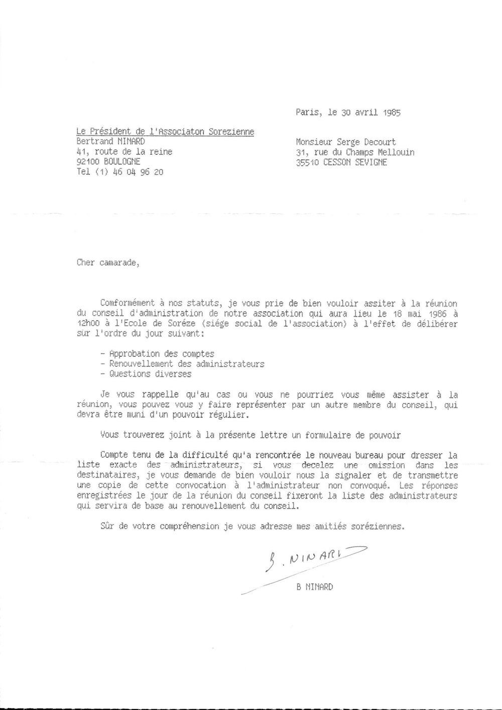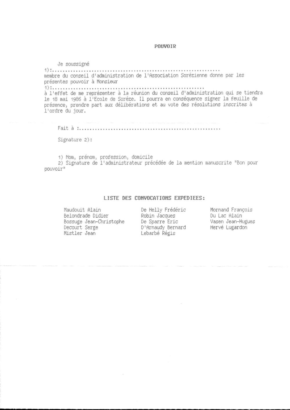 1986, 30 avril, convocation du CA de l'AS pour le 18 mai 1986