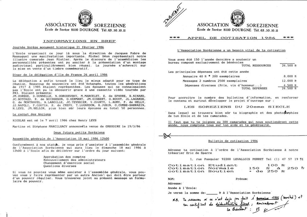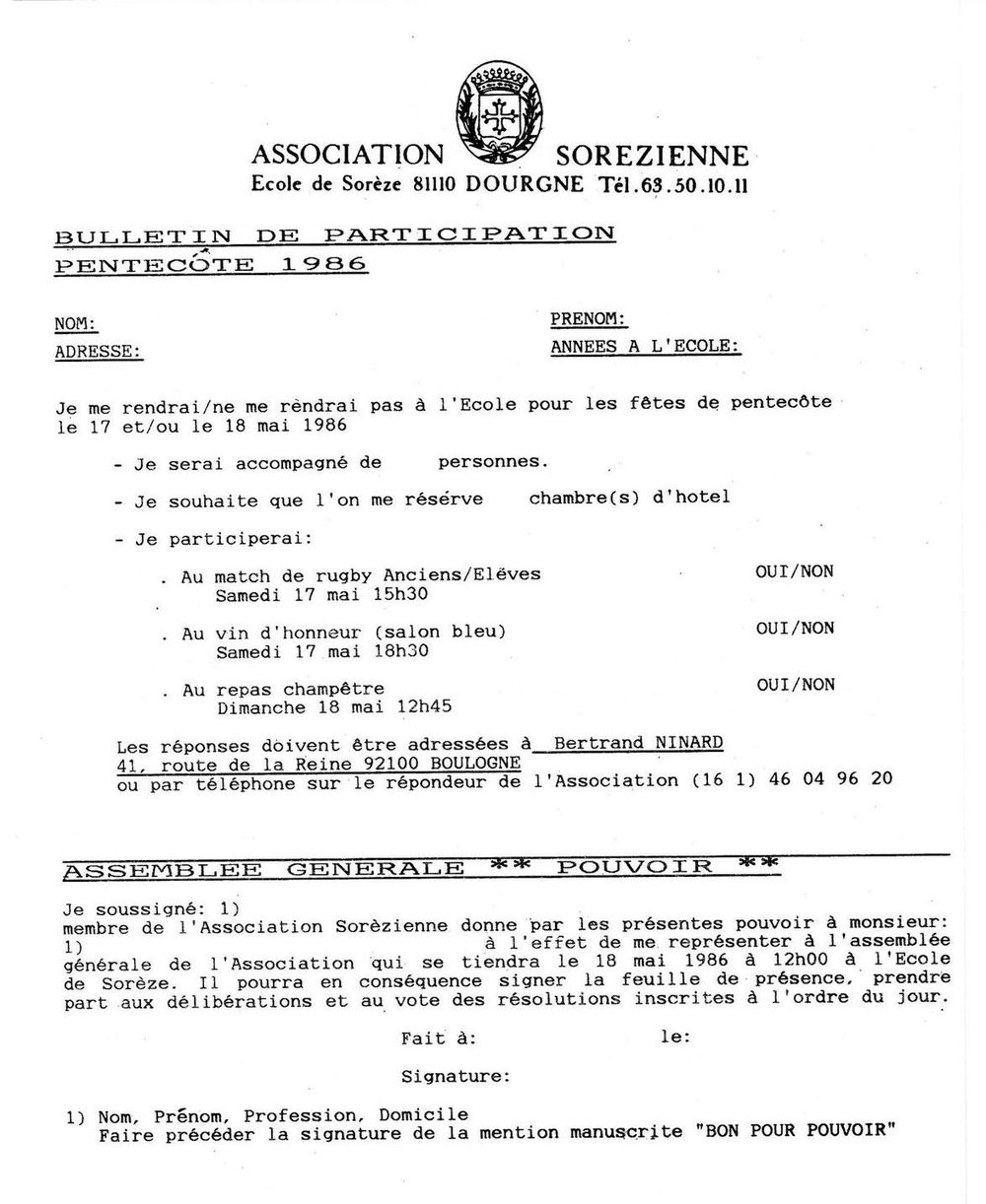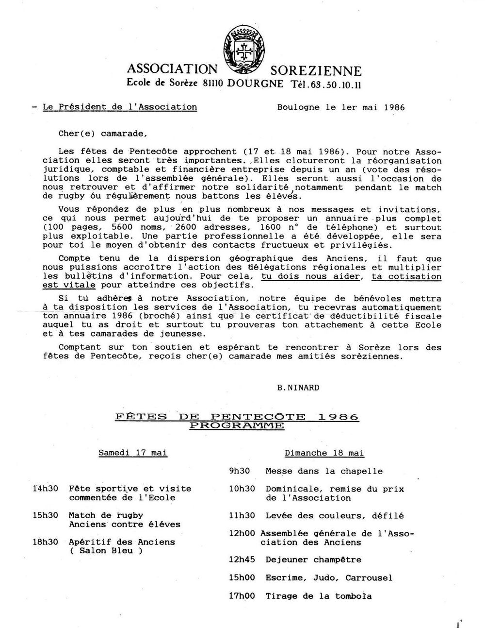 1986, mai, lettre d'information et programme de Pentecôte