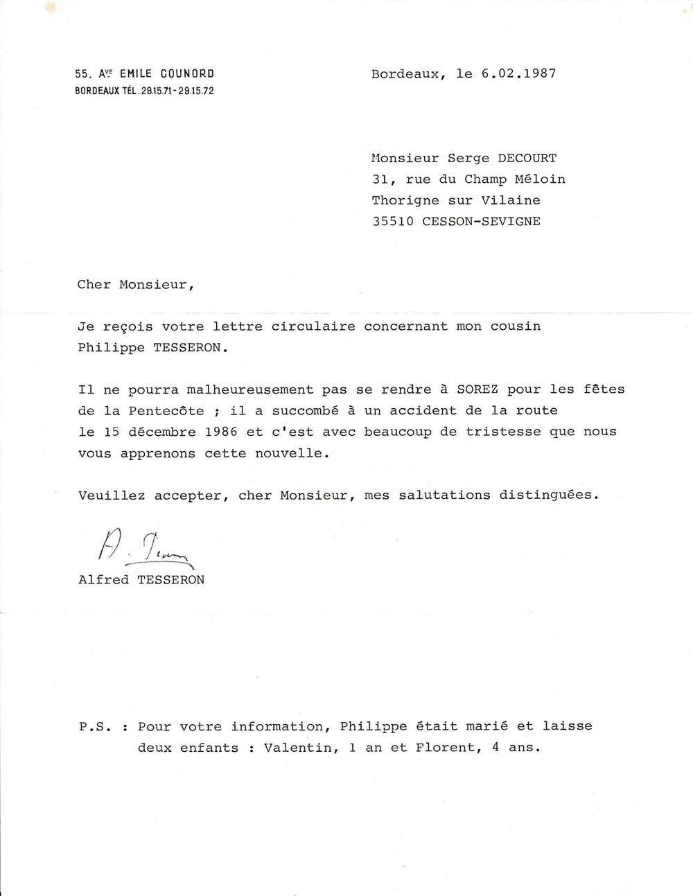 1987, 6 février, courrier du cousin de Philippe Tesseron (63-65)