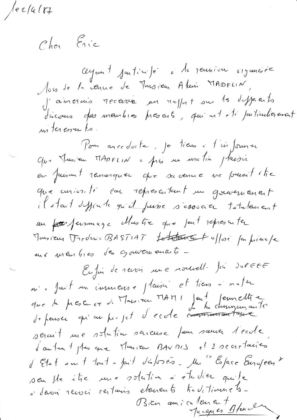 1987, 2 avril, Jacques Blanchy (63-69) à propos de la venue d'Alain Madelin