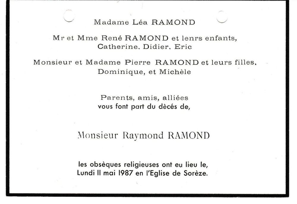 1987, 11 mai, décès du père de René et Pierre Ramond