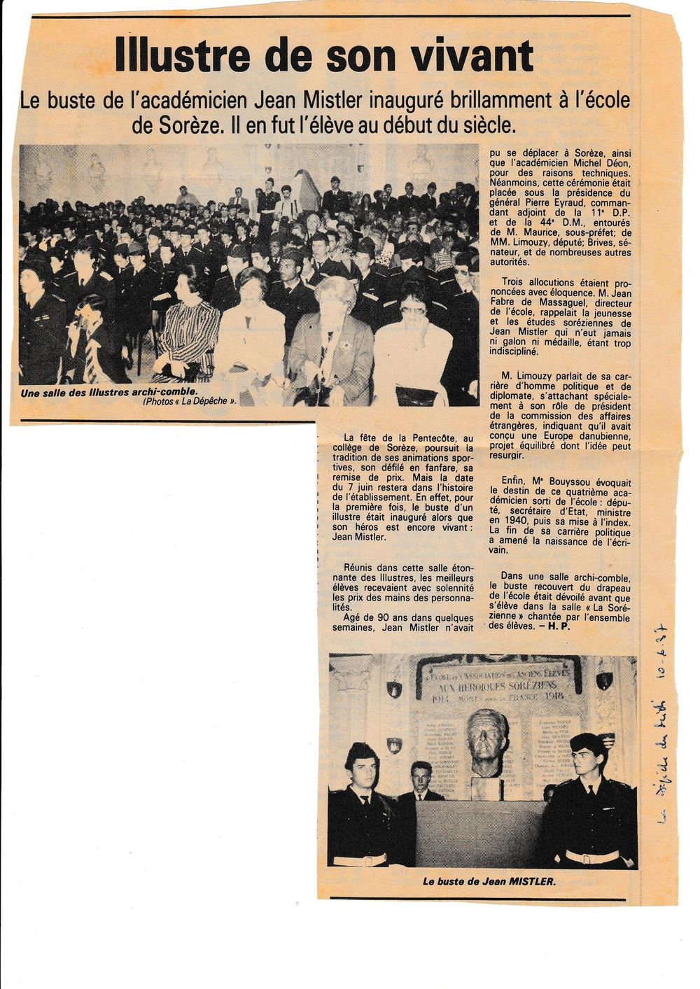 1987, 10 juin, un article de La Dépêche à propos de PentecĂ´te et de Jean Mistler