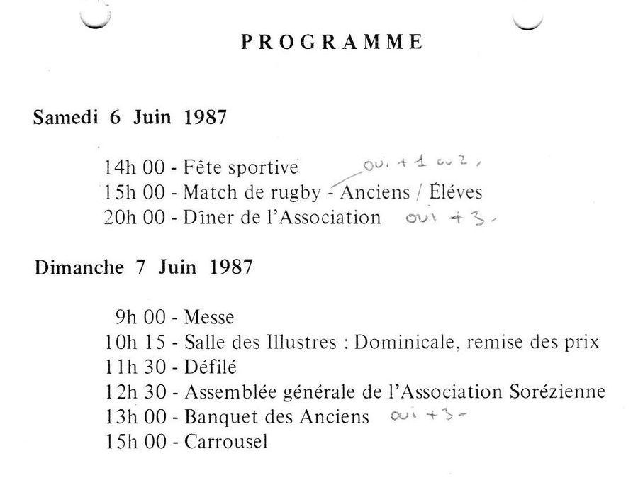 1987, juin, carton d'invitation et programme de la Pentecôte