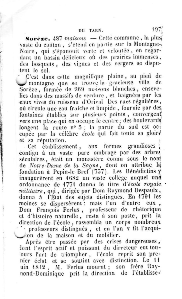 1987, juin, écrits anciens sur le village de Sorèze