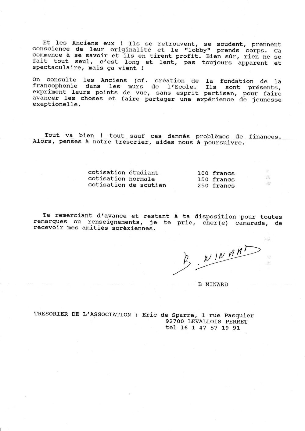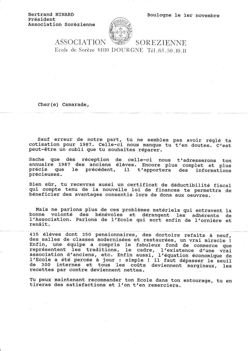 1987, 1er novembre, Ninard aux non-cotisants