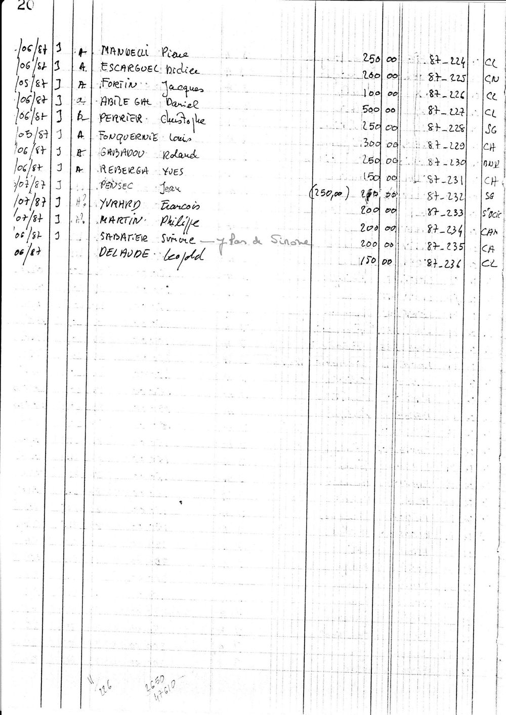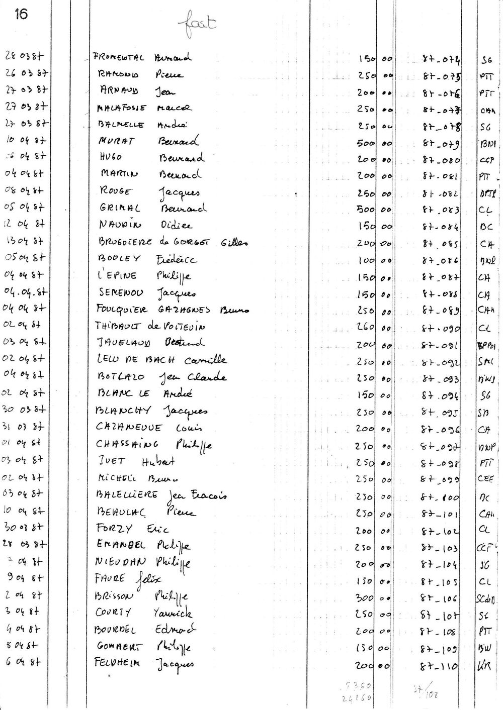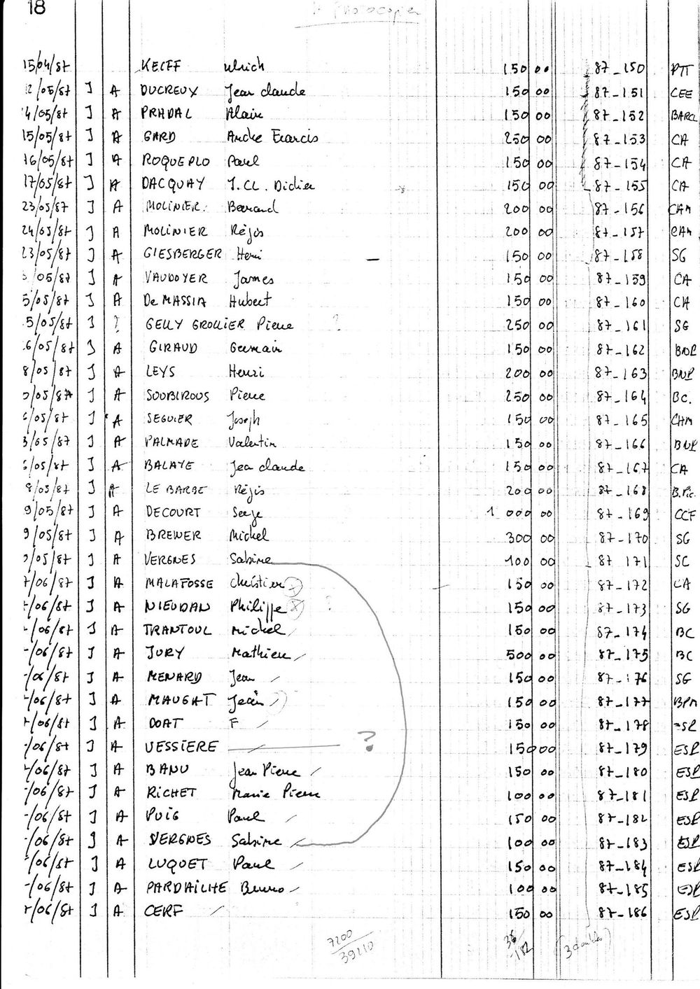 1987, état des cootisations