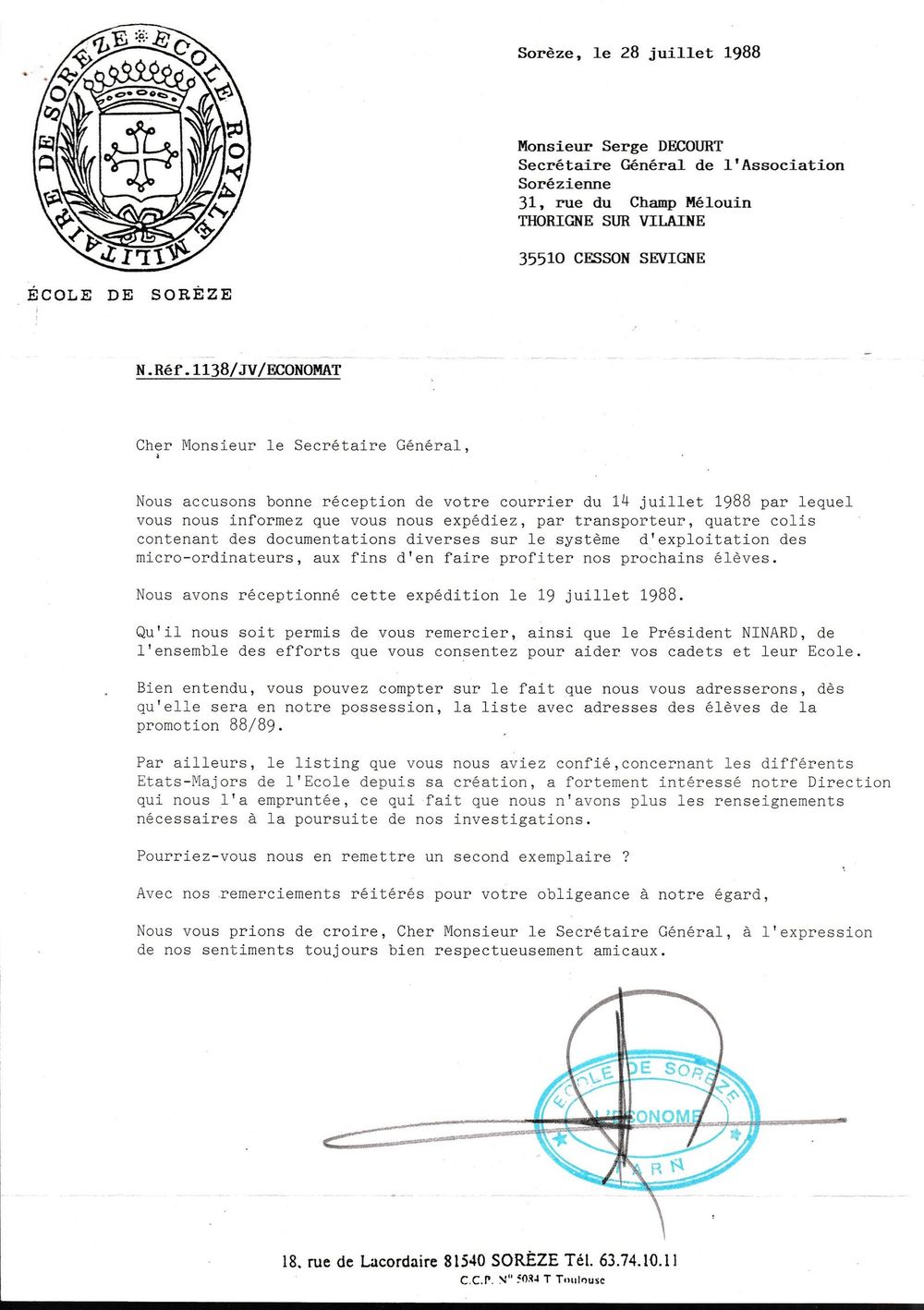 1988, 28 juillet, l'économe à Decourt