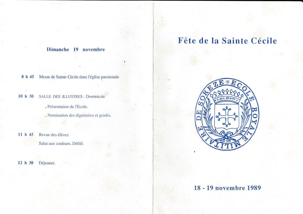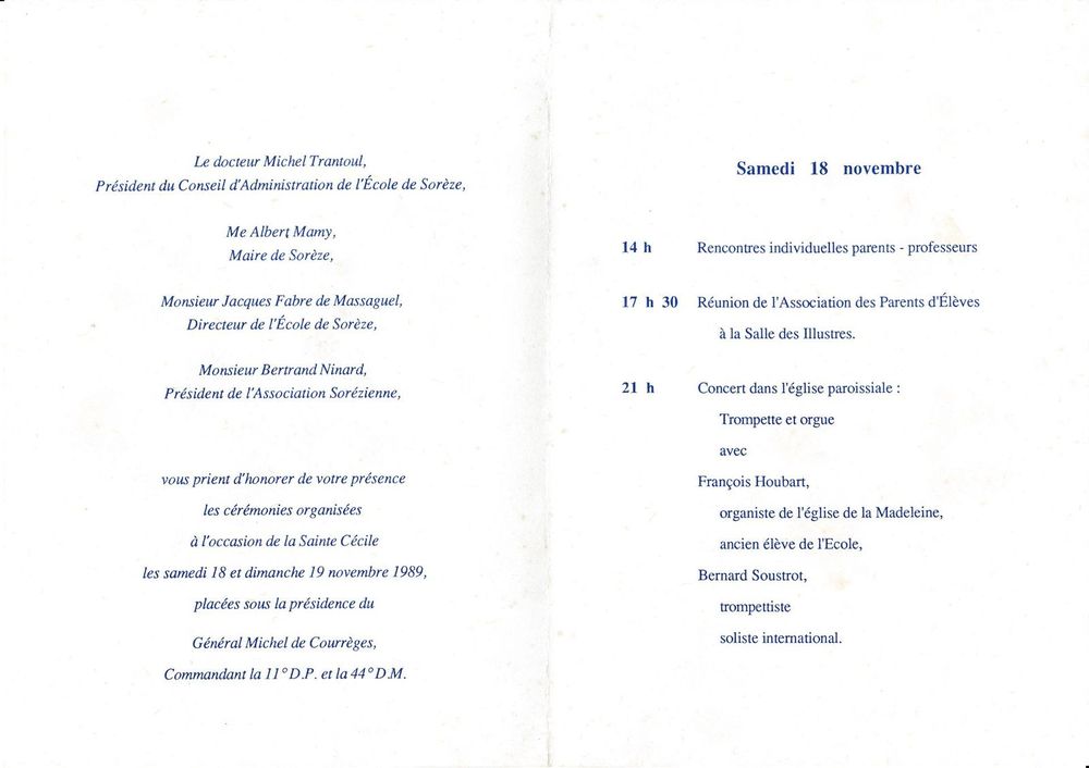 1989, 18 novembre, carton d'invitation à Sainte Cécile les 18 et 19