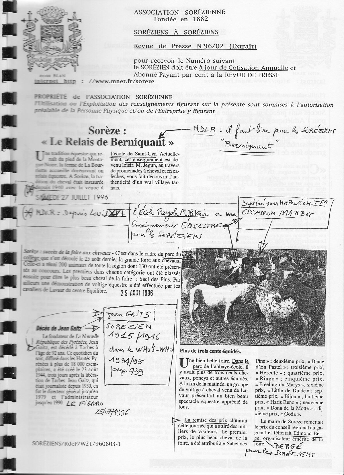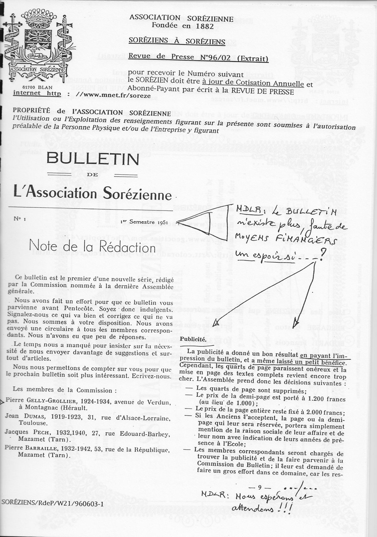 Les commentaires au stylo sont de Bernard Rech de Laval (49-62)