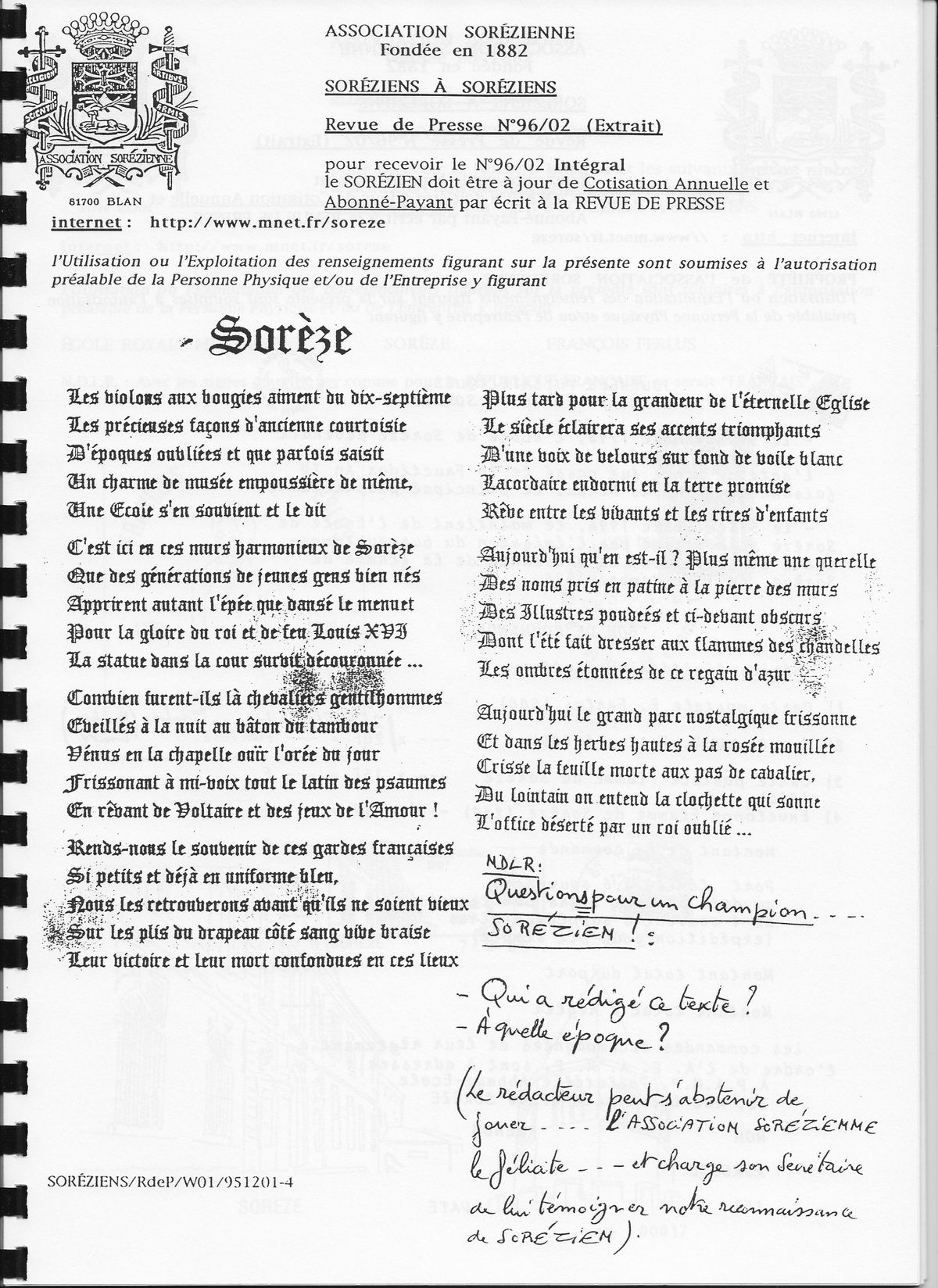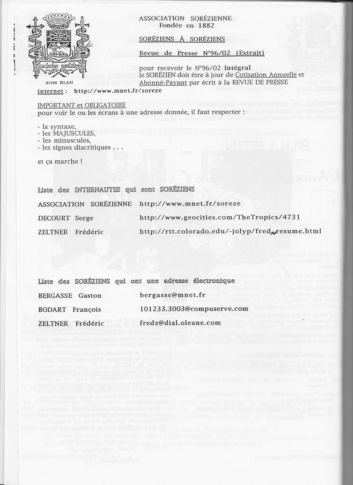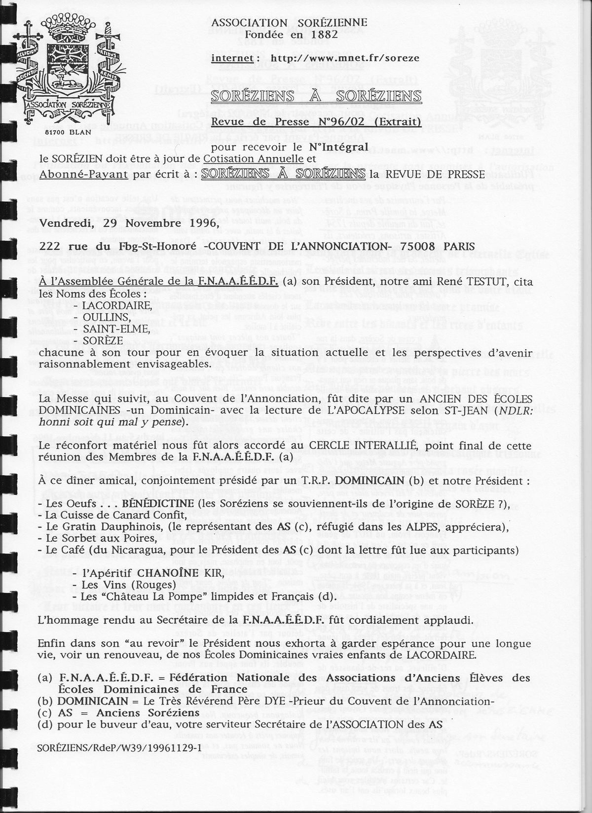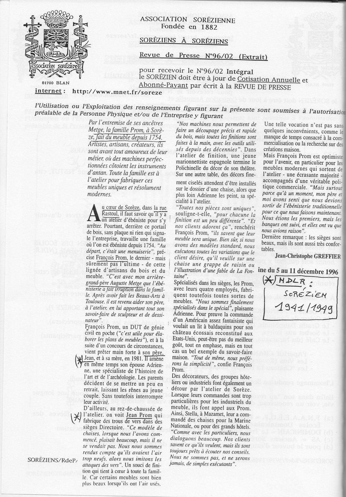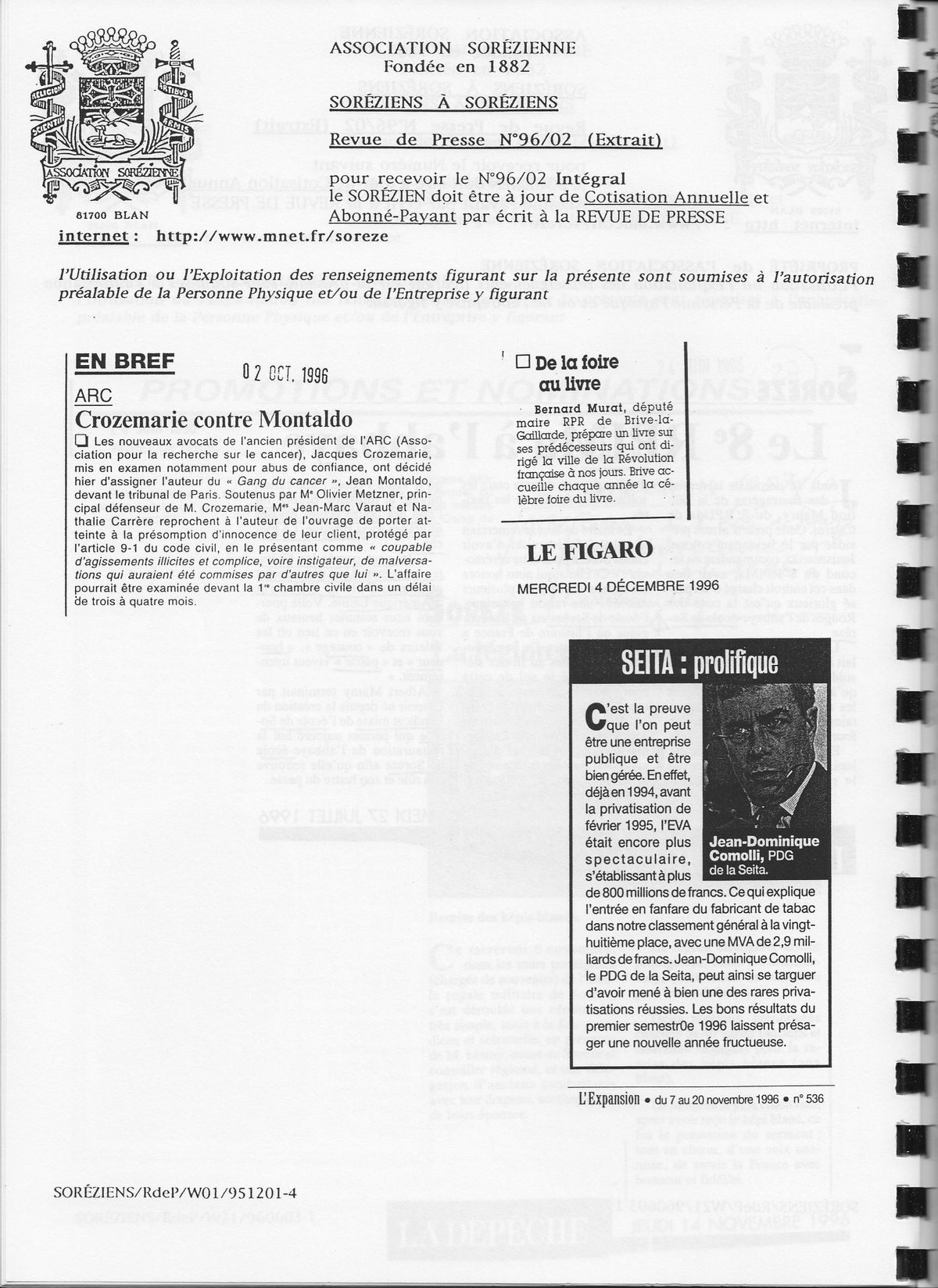 1996, décembre, La Revue de presse