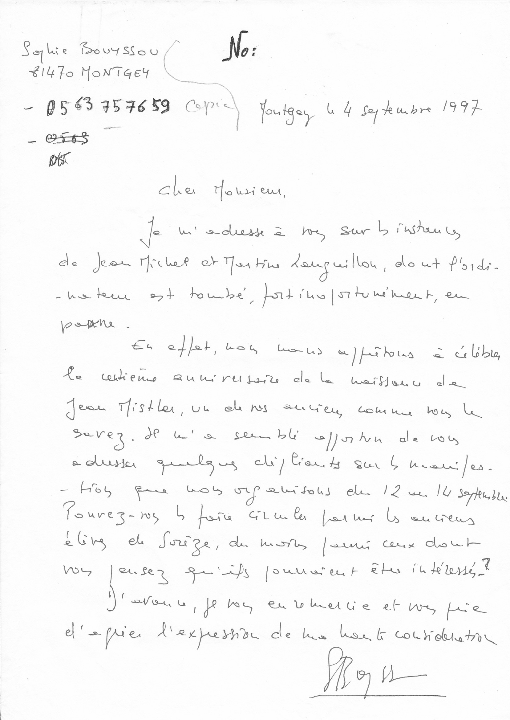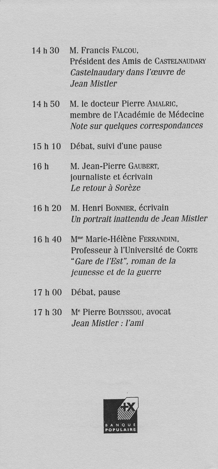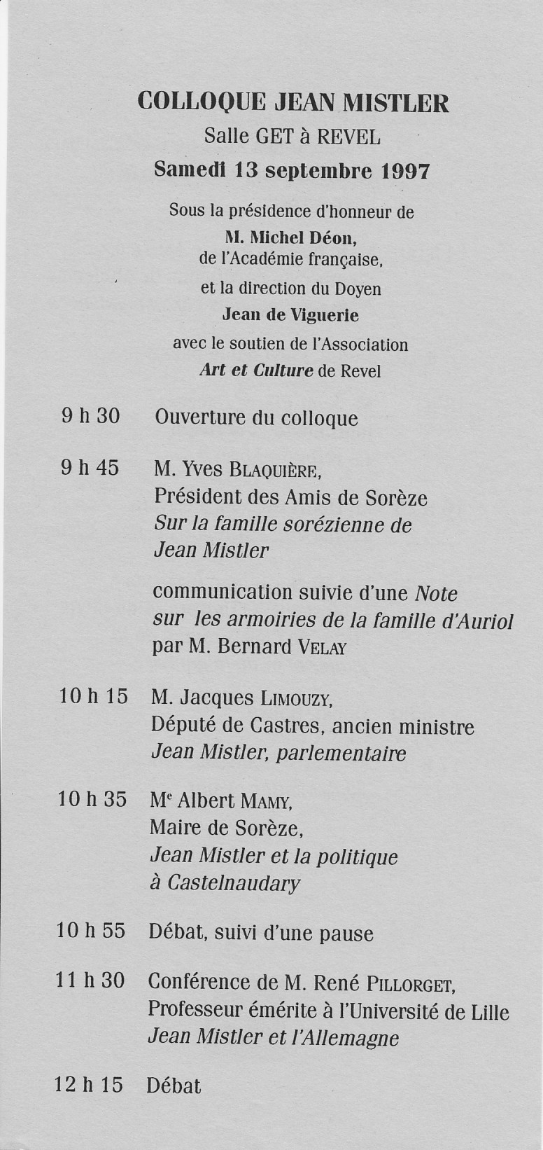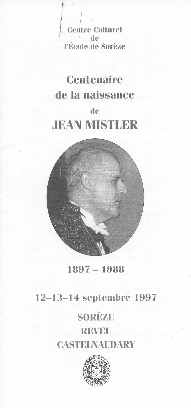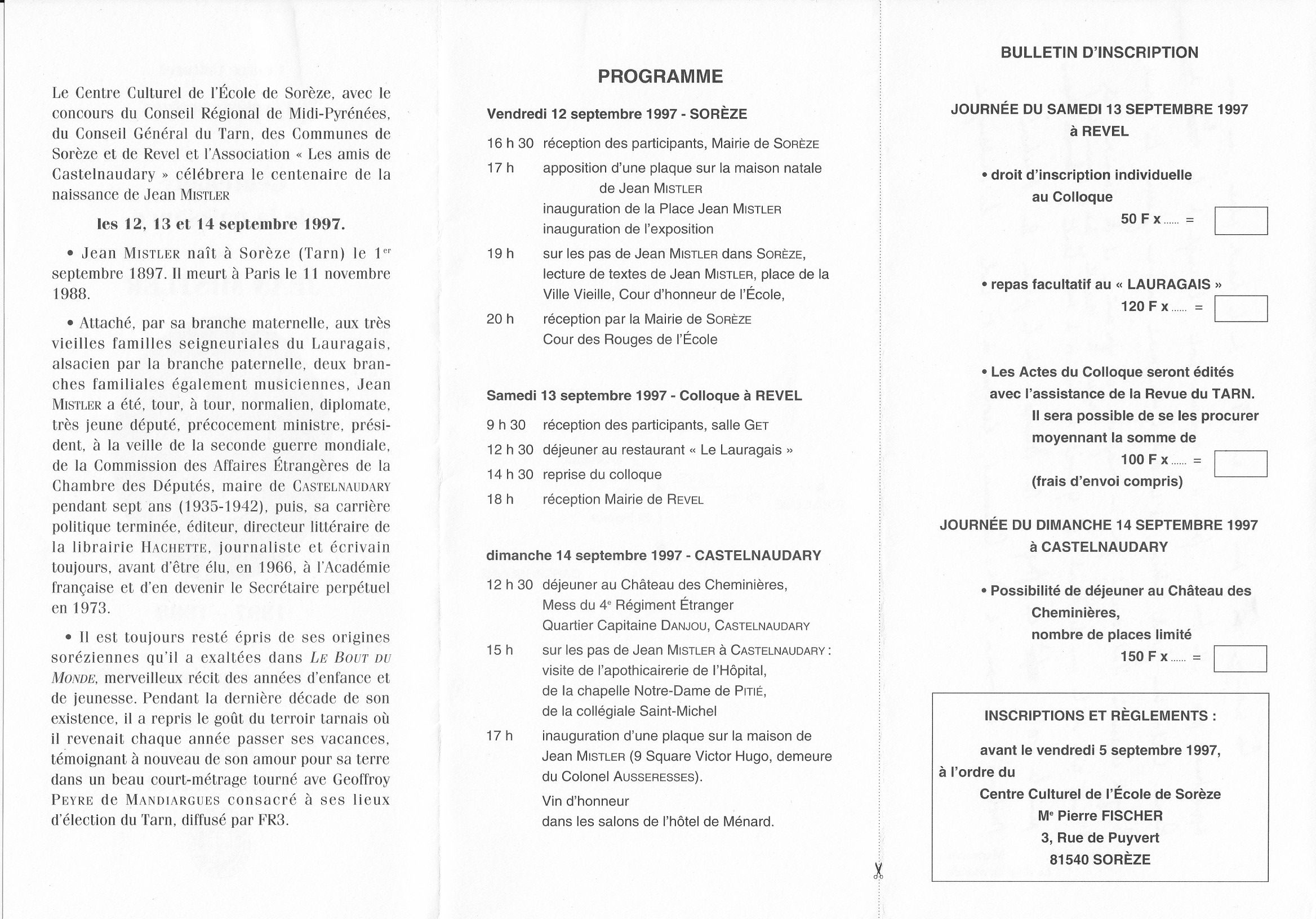 1997, 12-13-14 septembre, centenaire de la naissance de Jean Mistler