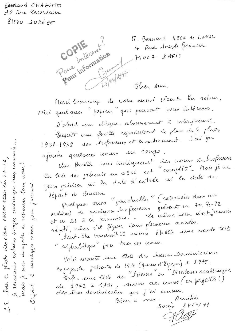 1997, 27 novembre, Chazottes à Bernard Rech de Laval
