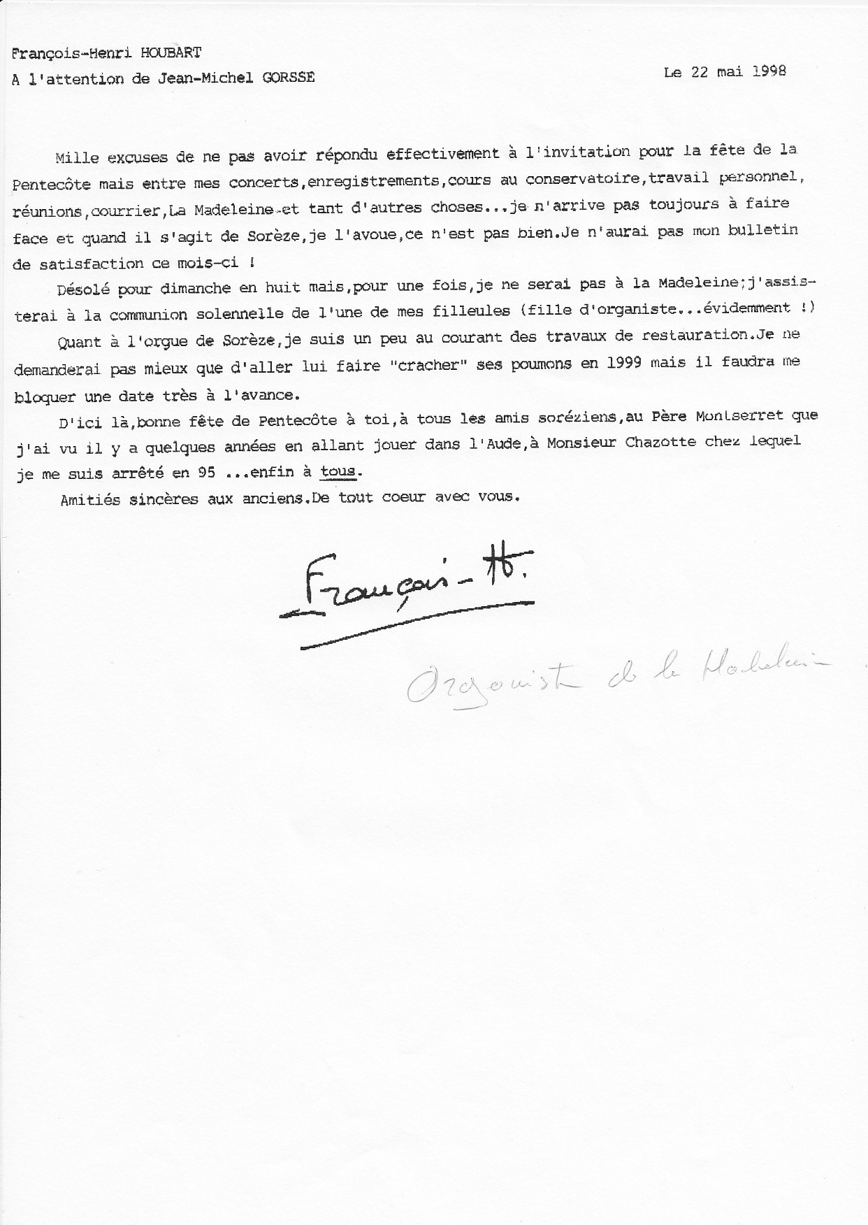 1998, 22 mai, François Houbart (60-66) à Gorsse