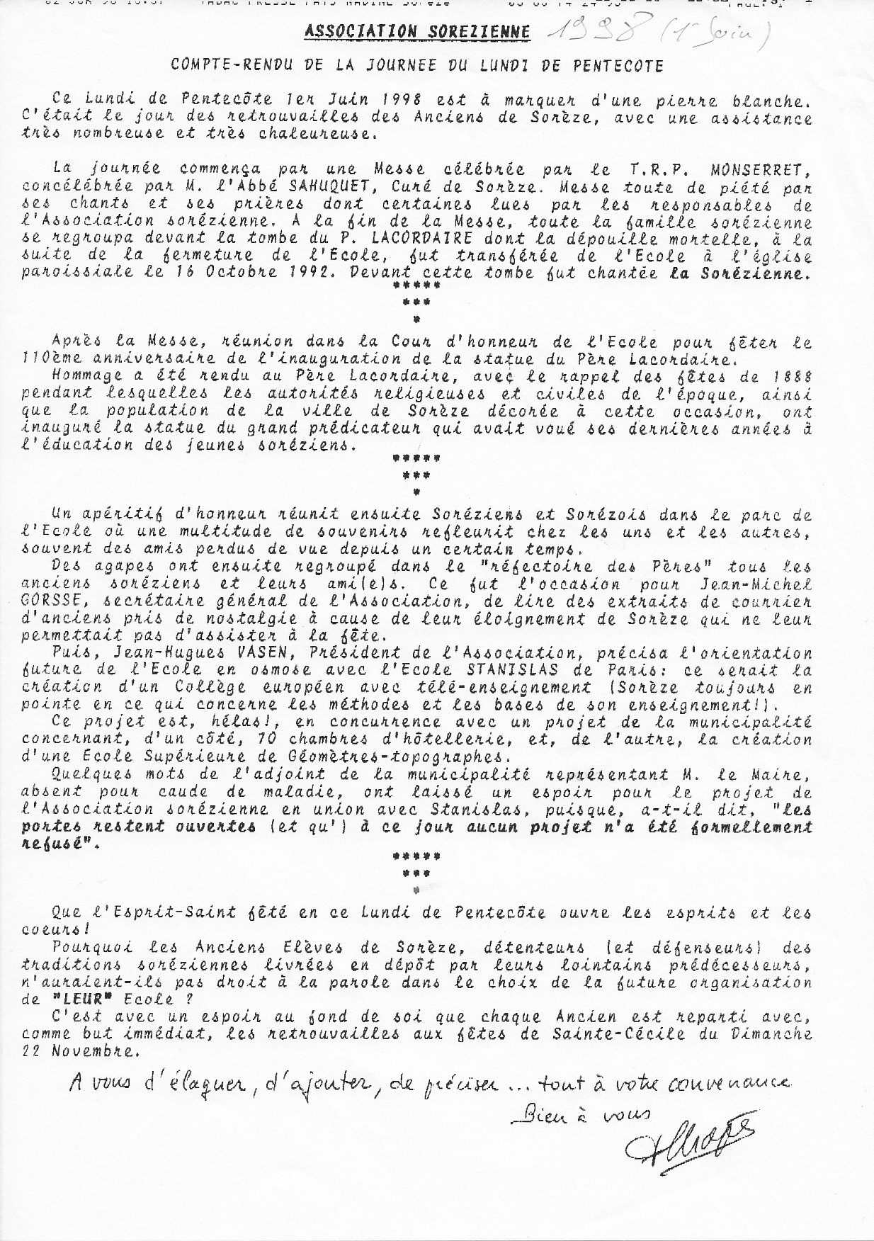 1998, PentecĂ´te, compte-rendu du lundi 2 juin