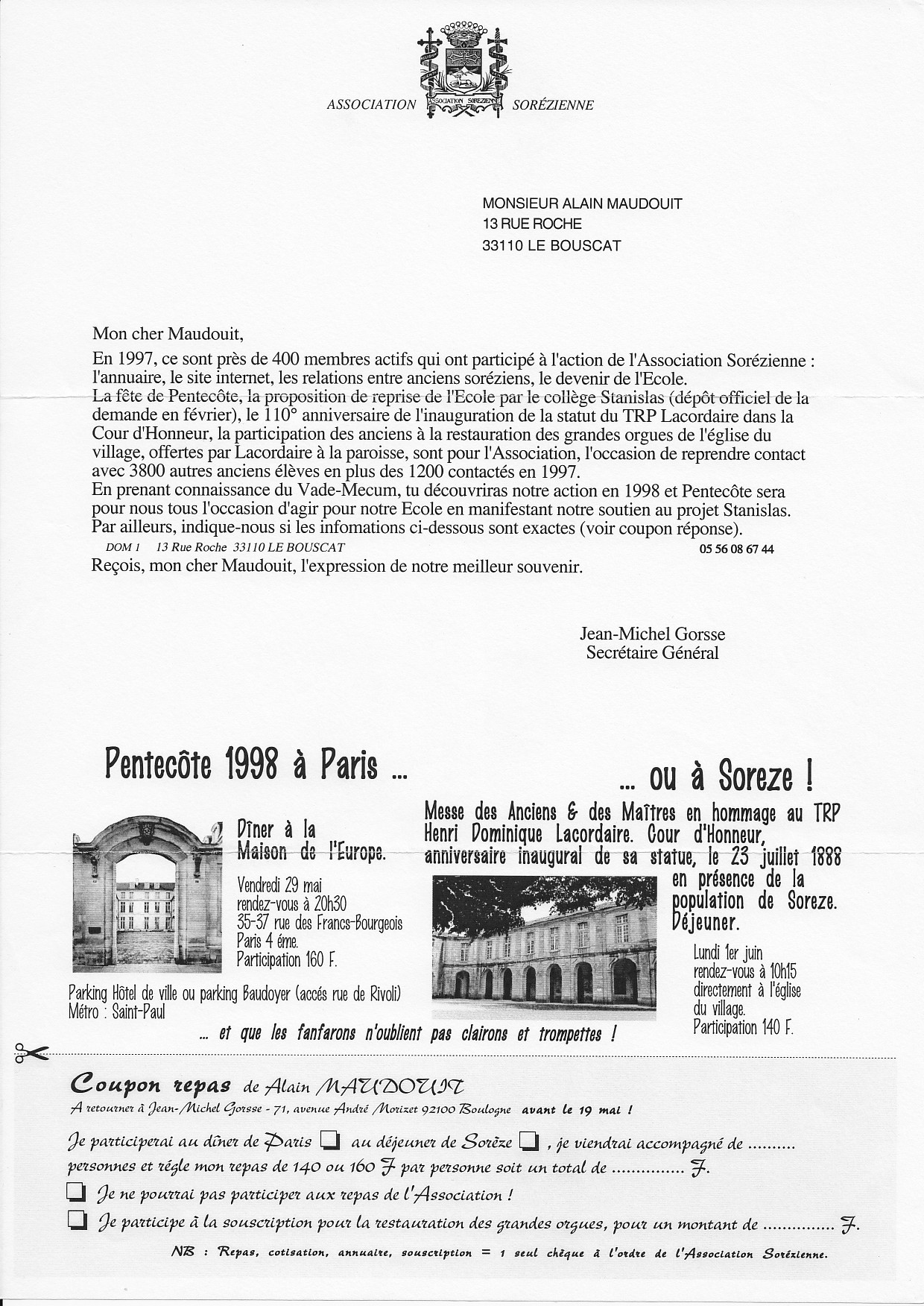 1998, annonce de Pentecôte le 29 mai à Paris et le 1er juin à Sorèze