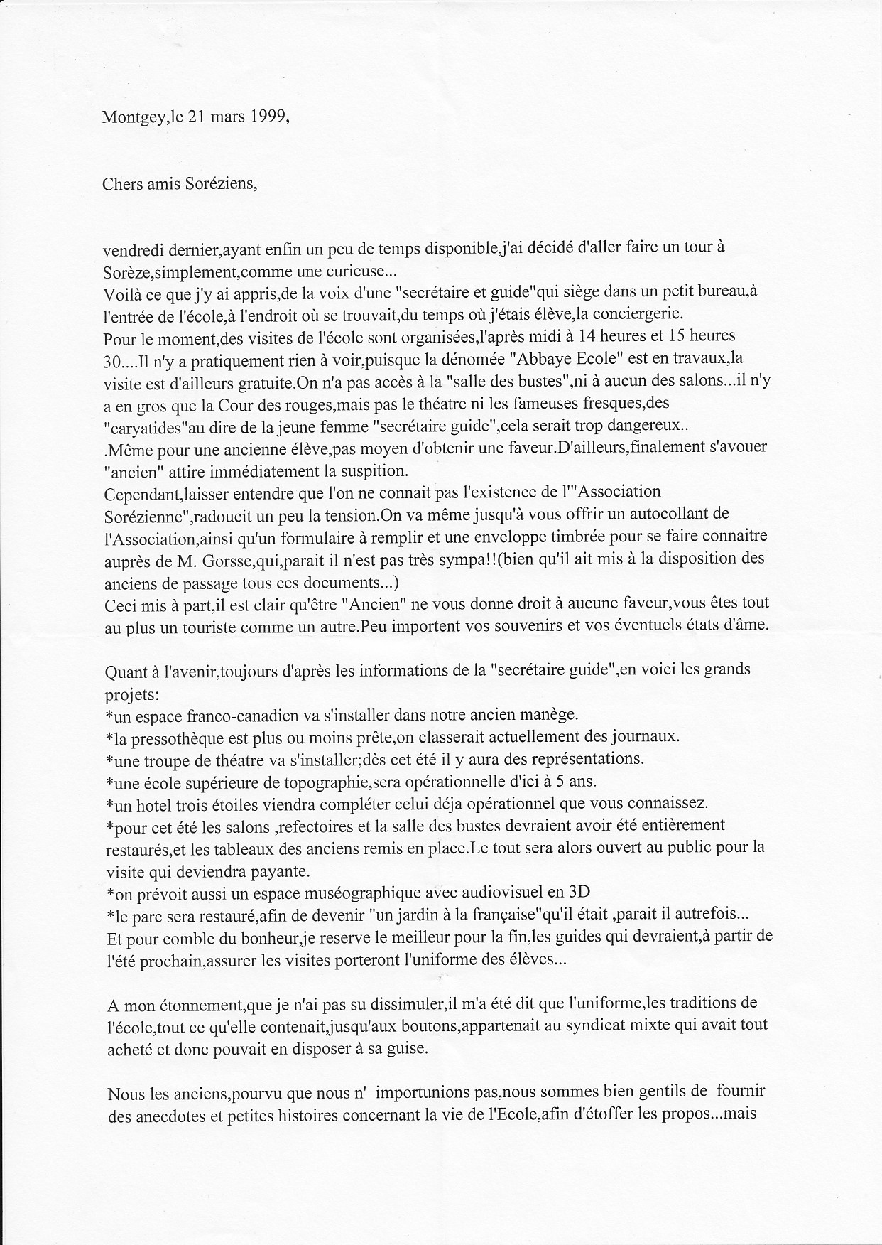 1999, 21 mars, Véronique Bouyssou (80-84) aux anciens