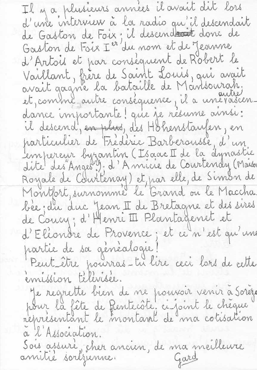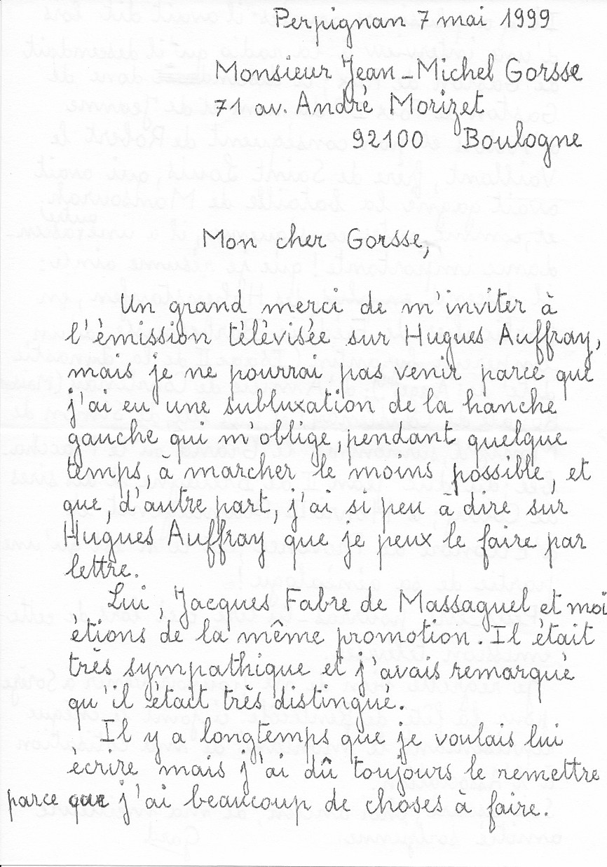 1999, 7 mai, André Gard (42-45) à Gorsse à propos d'Hugues Auffray