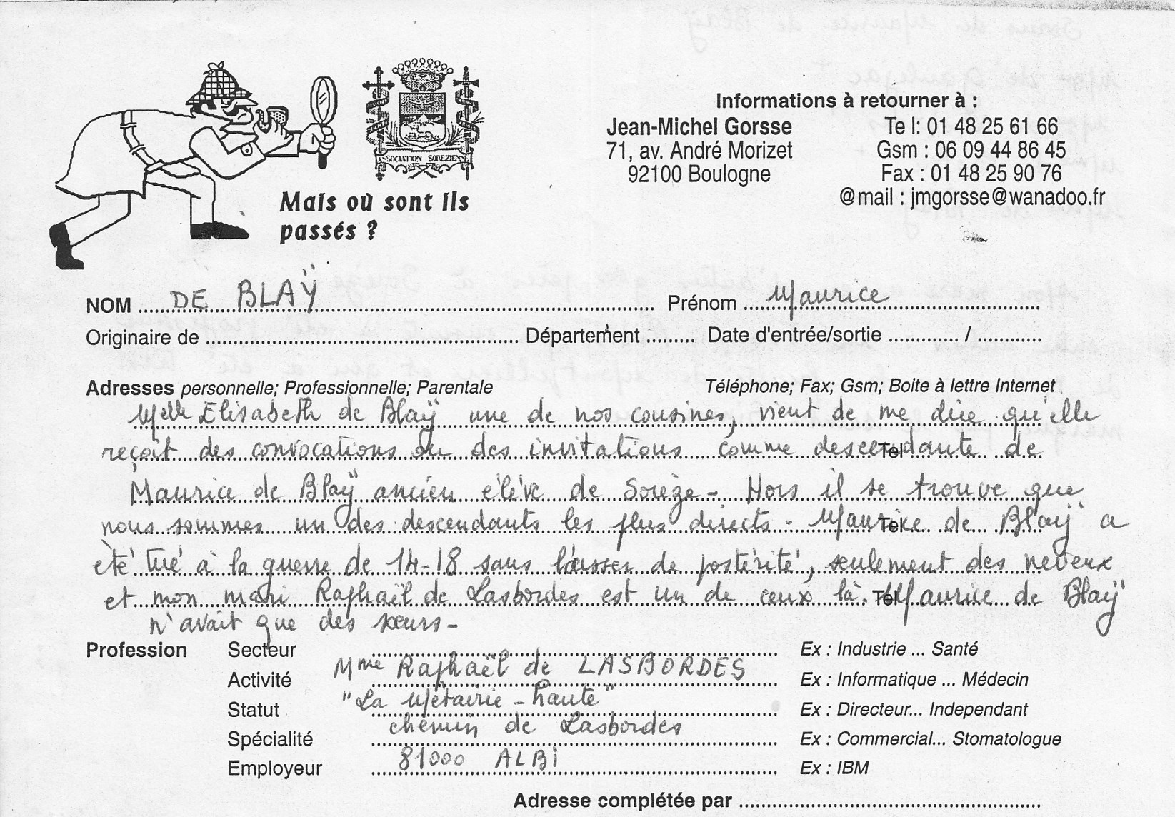 1999, Réponse de la famille De Blaÿ à Jean-Michel Gorsse